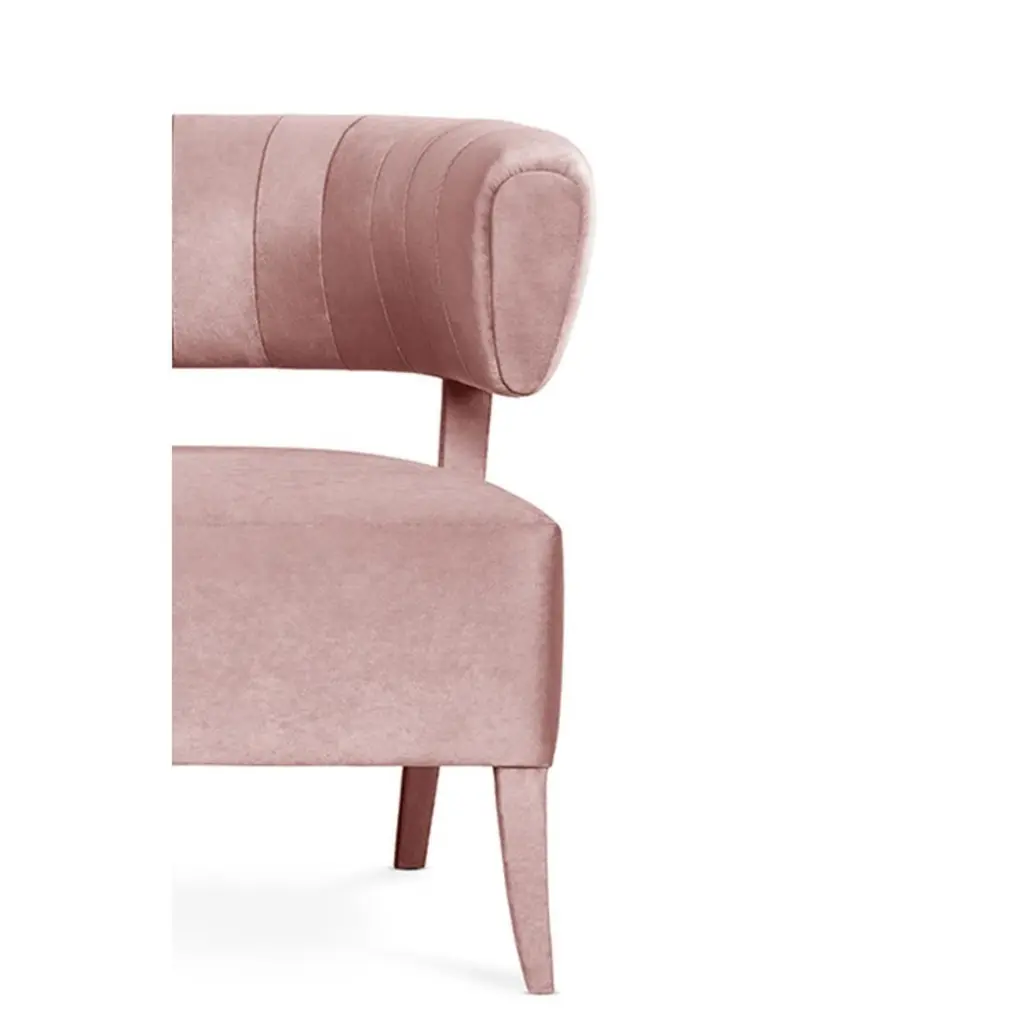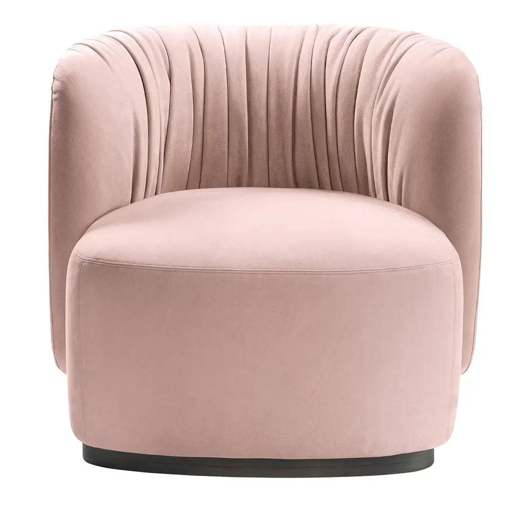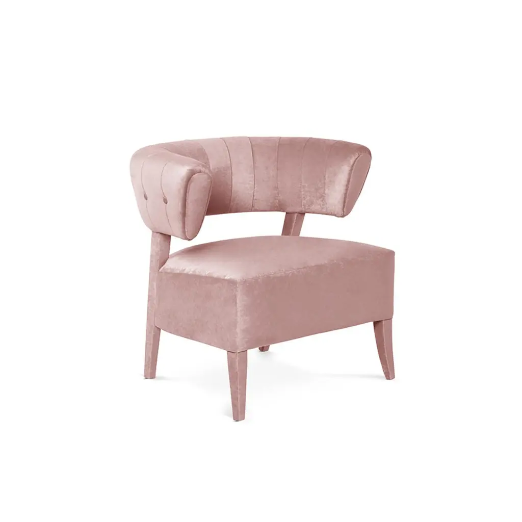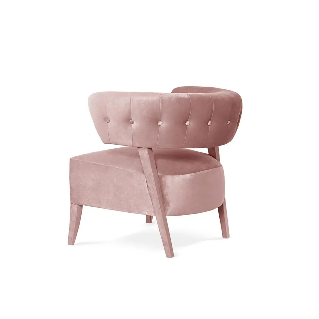Aileen Armchair by MunnaDimensions: D 78 x W 82 x H 79 cm. SH: 46 cm.Materials: Wood, foam, and upholstery.Finish: Trevira Velvet, ref. Pale Pink, TRV18.Available in all Munna fabrics except Wild Silk. Available in client’s ownmaterial. Available upholstered, Rosewood or Ebony veneer, solid Walnut, Wengé stain, or lacquer in all RAL colors, in matt or gloss. Fire retardant interlining is available on request. Handmade in Porto. Please contact us.Established in Porto in 2008, Munna is a furniture design brand renowned for creating handmade upholstery with unmatched craftsmanship, seamlessly blending noble materials and timeless design, for both commercial and residential projects.Made by hand in Porto, Munna’s pieces honor the profound heritage of craftsmanship, while drawing inspiration from history’s most influential artistic periods. Munna’s pieces are made of the finest fabrics such as cotton velvet, twill, leather, and silk; the finest wood veneers, such as ebony, walnut, and rosewood; sumptuous gold, silver, and copper leaves, metal details in brass, nickel, and copper, and superior lacquers.