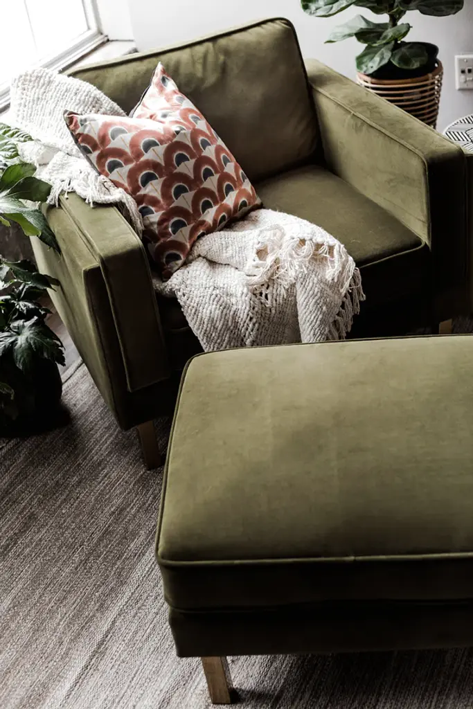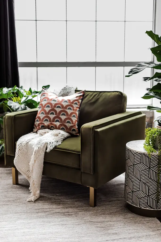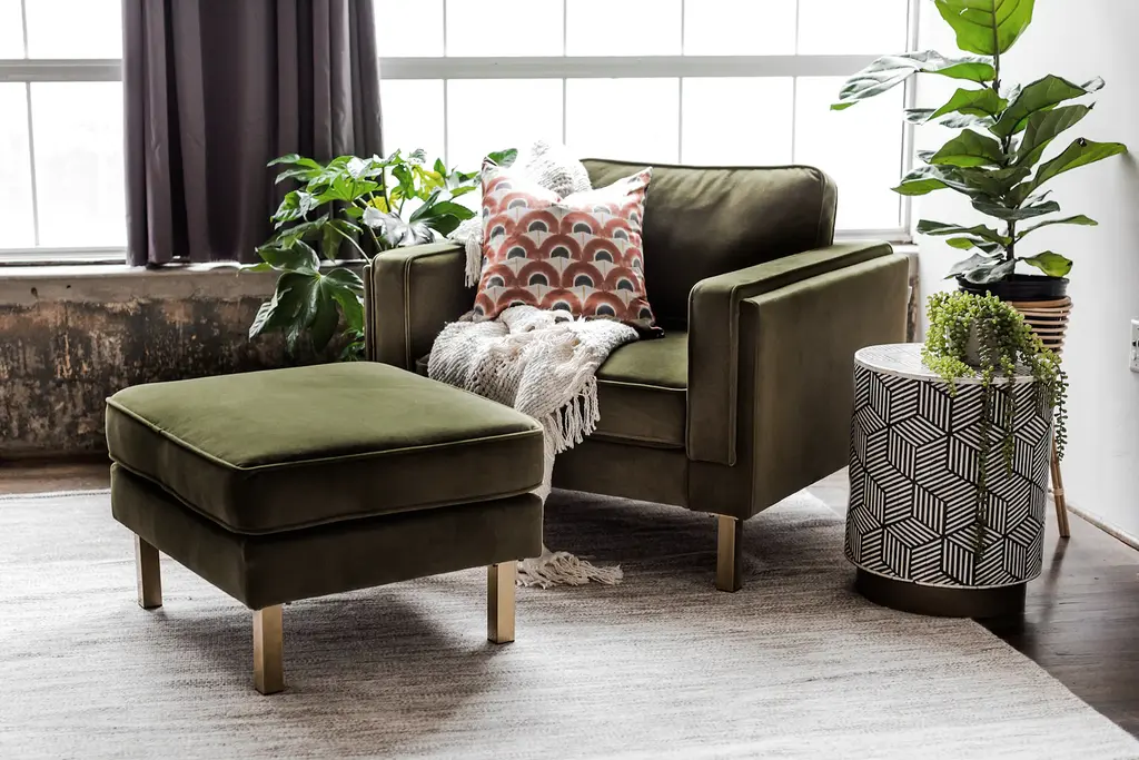 A tremendously cozy chair that's chic and perfect for relaxing. Arrives quickly in easy-to-move boxes intentionally designed to maneuver through tight spaces. Assembles easily without any tools.