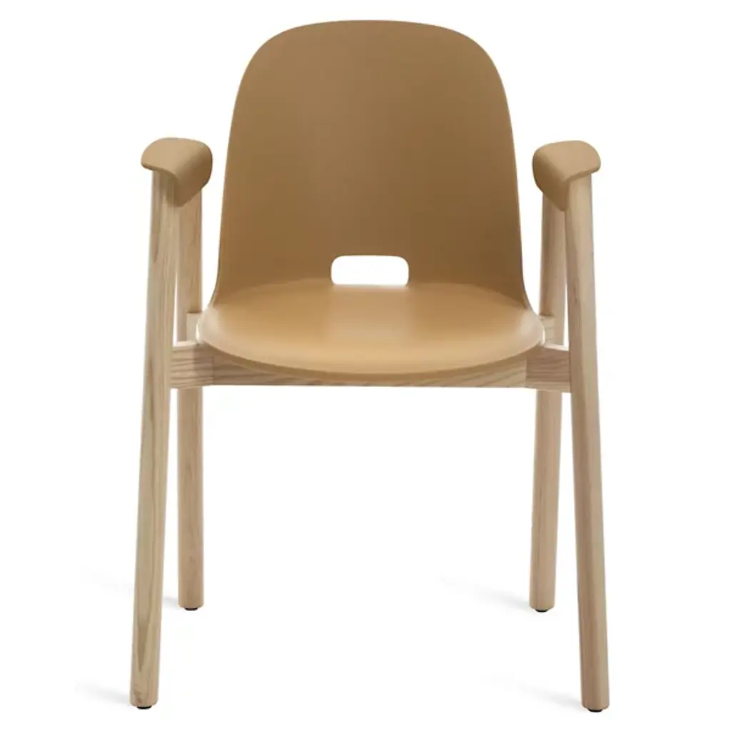 Bring an industrial look to your home décor with the Alfi Armchair by Emeco. This chair is eco-friendly and includes soft plastic (TPU) glides. A reclaimed wood polypropylene seat and back work in tandem with a durable frame of ash wood. The eye is drawn to your seatback’s rounded curves that complement the armchair’s elongated legs. The chair’s armrests inwardly turn, enhancing this furnishment’s artistic quality. The Alfi armchair is the creation of designer Jasper Morrison, whose works are engineered for comfort. Morrison’s fascination with detail gives his artworks an enduring sense of timelessness.