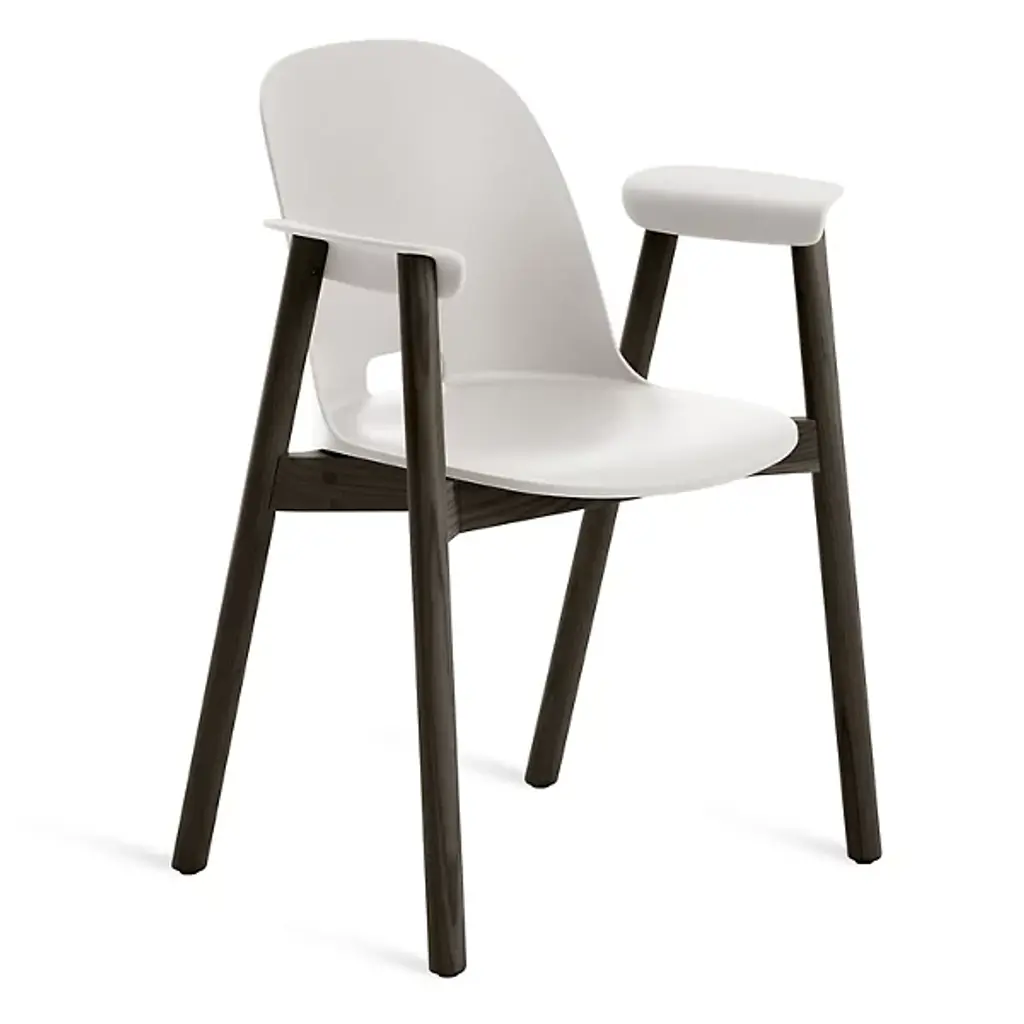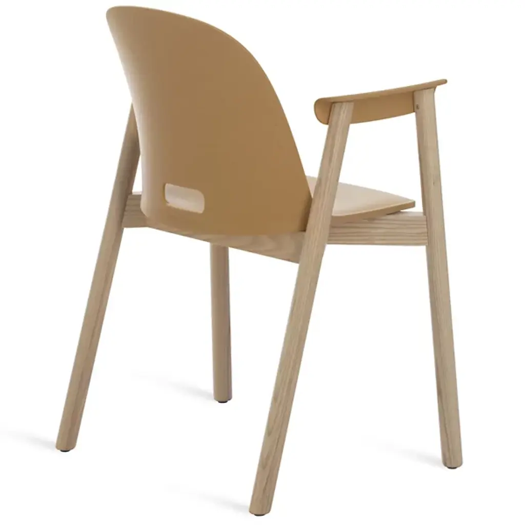 Bring an industrial look to your home décor with the Alfi Armchair by Emeco. This chair is eco-friendly and includes soft plastic (TPU) glides. A reclaimed wood polypropylene seat and back work in tandem with a durable frame of ash wood. The eye is drawn to your seatback’s rounded curves that complement the armchair’s elongated legs. The chair’s armrests inwardly turn, enhancing this furnishment’s artistic quality. The Alfi armchair is the creation of designer Jasper Morrison, whose works are engineered for comfort. Morrison’s fascination with detail gives his artworks an enduring sense of timelessness.