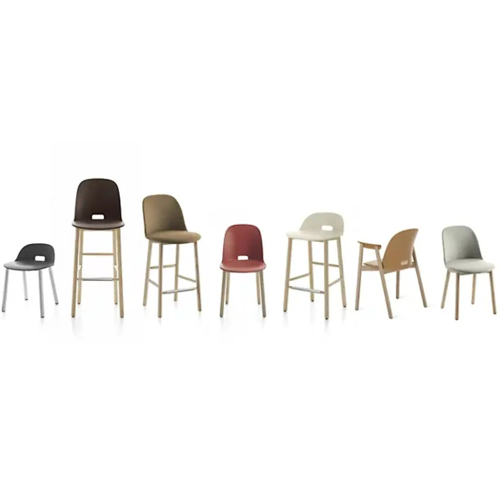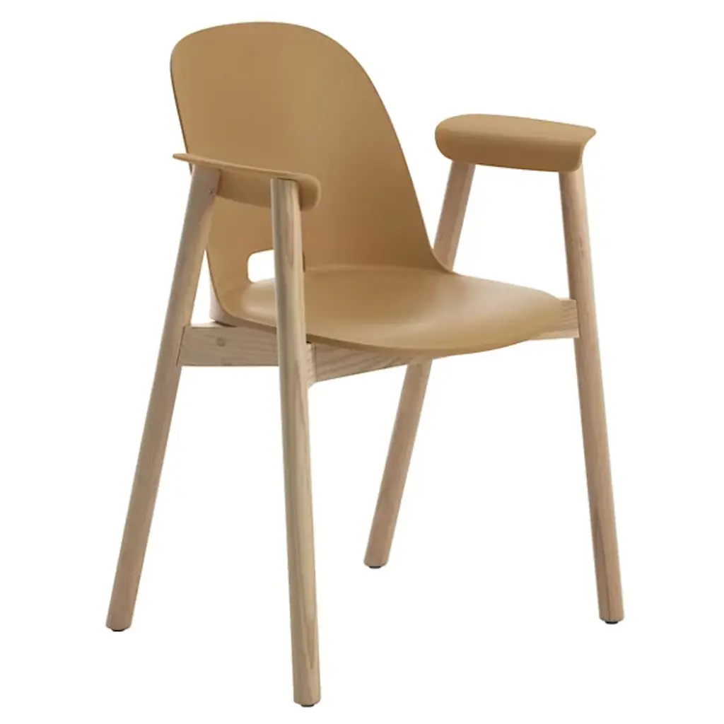 Bring an industrial look to your home décor with the Alfi Armchair by Emeco. This chair is eco-friendly and includes soft plastic (TPU) glides. A reclaimed wood polypropylene seat and back work in tandem with a durable frame of ash wood. The eye is drawn to your seatback’s rounded curves that complement the armchair’s elongated legs. The chair’s armrests inwardly turn, enhancing this furnishment’s artistic quality. The Alfi armchair is the creation of designer Jasper Morrison, whose works are engineered for comfort. Morrison’s fascination with detail gives his artworks an enduring sense of timelessness.
