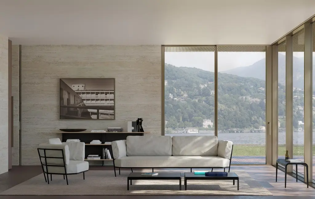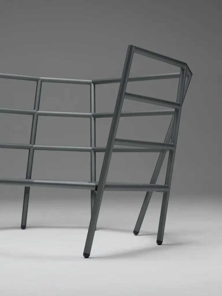 Two-seater sofa with structure in lacquered steel. Seat and back covered with fabric or leather. Removable covers.Michele De LucchiBorn in Ferrara in 1951, he graduated in architecture in Florence. In 2000 he received the title of “Ufficiale della Repubblica Italiana” from President Ciampi for merits in the field of design and architecture. Since 2003, a large number of his designs have been part of the permanent collection at the Centre Georges Pompidou. Since 2004 he has worked with Alias planning storage system layout, dehors (2008) and norma (2009).Available in other various options