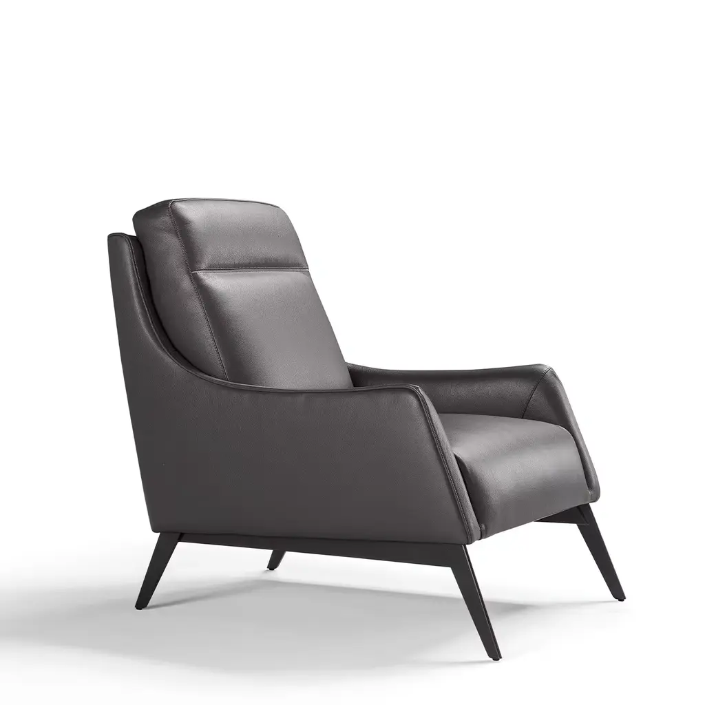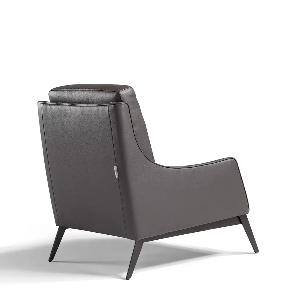 This bold and dynamic armchair exudes a timeless allure that effortlessly complements any modern setting. The generously cushioned seat and backrest - with a contrasting grosgrain detail - are set in a sleigh-like shell, the whole wrapped in first-rate leather in an intense shade of brown. Resting on slim and slanted, anthracite-hued metal feet, the design is entirely customizable, please ask the Concierge for options.