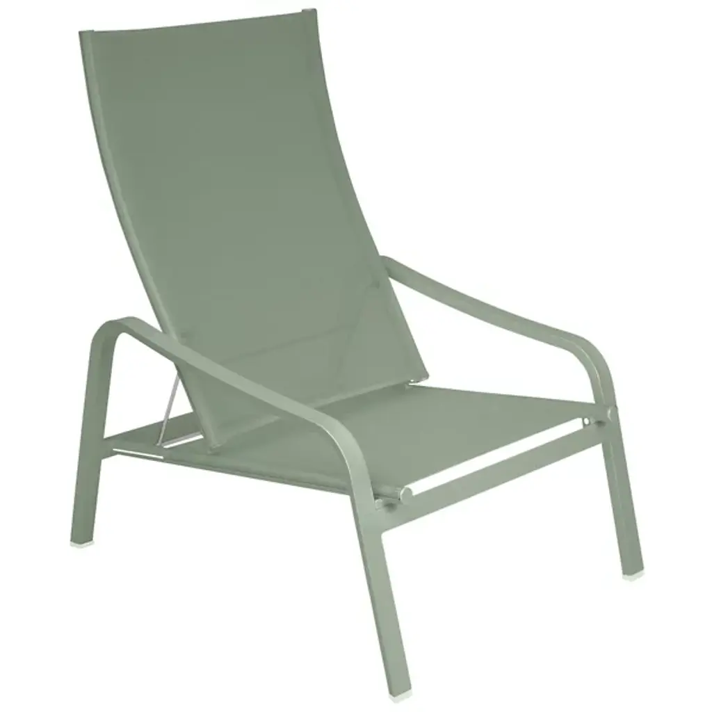 An airy way to relax the day away. The Alize Armchair by Fermob adds modern style and literal lounging flexibility to a modern outdoor living space. It has ergonomic curves fashioned out of strong yet lightweight Aluminum. Also strong and lightweight, and breathable, is the specialty Outdoor Technical Fabric stretched across both the back and seat of the chair. The back is adjustable, with 2 different positions to maximize the occupant's lounging comfort. And when it's not in use, the light materials and sleek lines of this outdoor armchair make it easy to stack (up to 10 high) and keep out of the way.