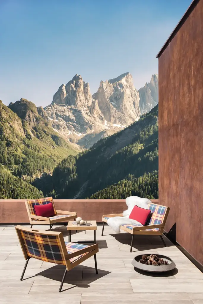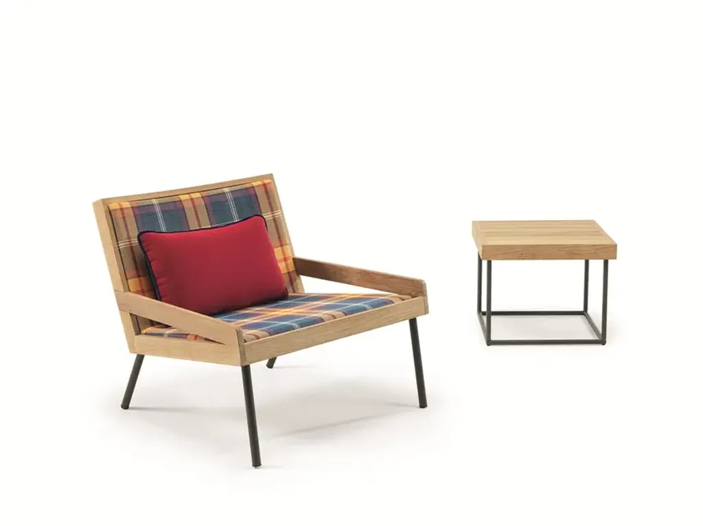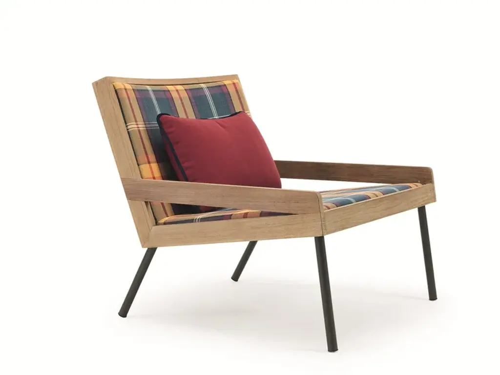 Mountain - TartanAllaperto collection brings us ‘bespoke’ design elements in Coffee brown metal covered in natural teak and Ethitex padded fabric with a specifically designed tartan to ensure maximum comfort and durability even in the coldest locations.Allaperto, the lounge collection spawned by the partnership between Ethimo, Matteo Thun and Antonio Rodriguez, which has become iconic for the different ‘outfits’ with which it interprets the places that host it, continues its transformation in two new moods, Veranda and Nautic, pairing teak, respectively, with natural rattan and rope.Allaperto Veranda dresses the lounge armchair in rattan, offering an example of the increasingly eco-friendly approach that focuses on the choice of materials with a rather vintage feel. The natural rattan weave is a perfect match for the transitional spaces between indoors and outdoors, such as porticos or verandas. Areas which today, in our everyday lives, become a veritable extension of the comfort offered by our interiors, with an innate ability to surprise, also in contemporary exterior design. The special texture of natural rattan and its sophisticated weave help create a charming “exotic” effect in the semi-open spaces that host this new version of the Allaperto armchair.Allaperto Nautic, the second new outfit designed with Matteo Thun and Antonio Rodriguez, styles the entire lounge, combining teak with polypropylene rope, a 100% outdoor, recyclable material. The Nautic mood is inspired by the maritime world, and pairs precious teak with an artisan herringbone weave in rope, endowing chairs and sofas with a distinctive personality that boosts the appeal of their slender lines.The characteristic weave of Veranda and Nautic is entirely hand-made, conveying an authentic sartorial feel and the sense of an artisan crafting process.For 2021, the Allaperto collection is also enriched by another important new addition: a suspened armchair emblem of an outdoor environment made of lightness, in full harmony with the flexibility of the natural world. The new suspended armchair, also available in the swing version with self-bearing stand, can be personalised in Rattan (Veranda mood), rope (Nautic mood ) or Etwick fibre (Mountain mood), paired with the teak frame that characterises the entire Allaperto collection. Its generous dimensions combine with a solid frame, creating a brand new proposal ideal for “swinging” carefree in the open air in maximum comfort.Allaperto confirms its identity as a surprising, dynamic collection that reinvents itself according to the latest trends and the context that hosts it, generating a range of different experiences for enjoying outdoor spaces with maximum effect.
