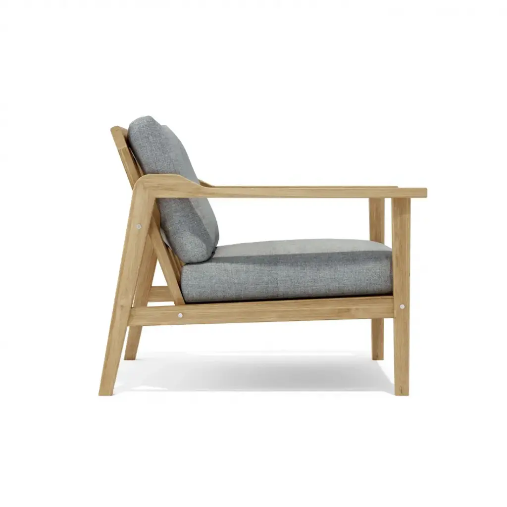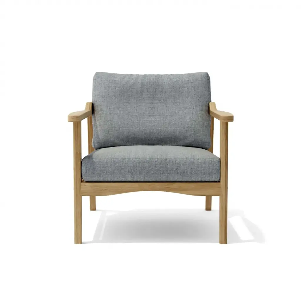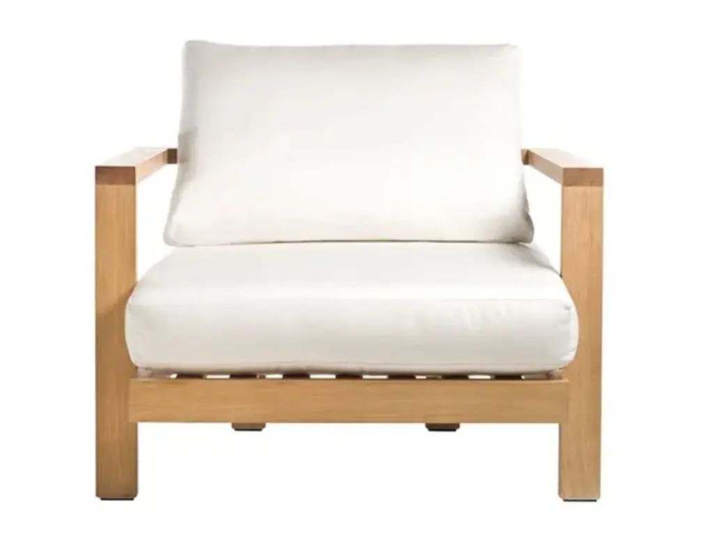 Enjoy the relaxing breeze in outdoor comfort with the Amalfi Deep Seating Armchair. Constructed from solid teakwood finished in water base sealer, the Amalfi Deep Seating Armchair is the pragmatic and simple to care furniture that fits any outdoor decor. Add a matching Amalfi Side Table by your side to place drinks or a book and an additional chair to create a set. Includes custom made cushions for outdoor from Sunbrella fabric, saturated with UV-stable pigments that resist color fade, water, mold and mildew. Comes knocked down requiring minimal and easy assembly. Product sold individually.