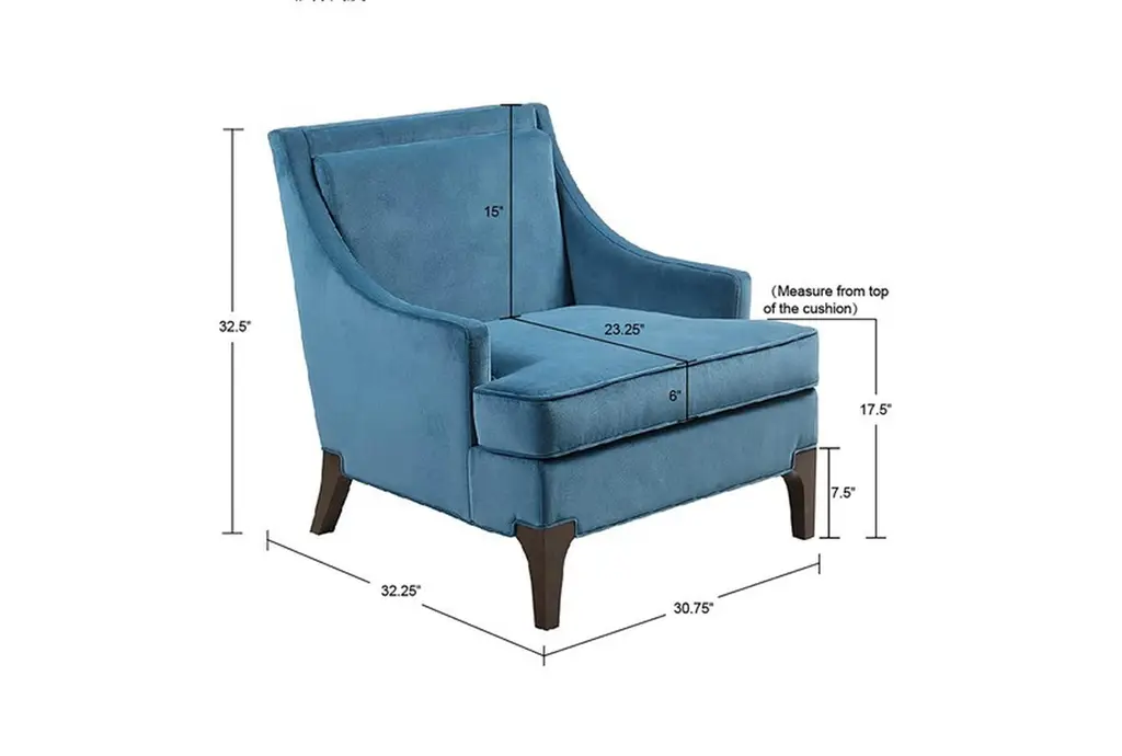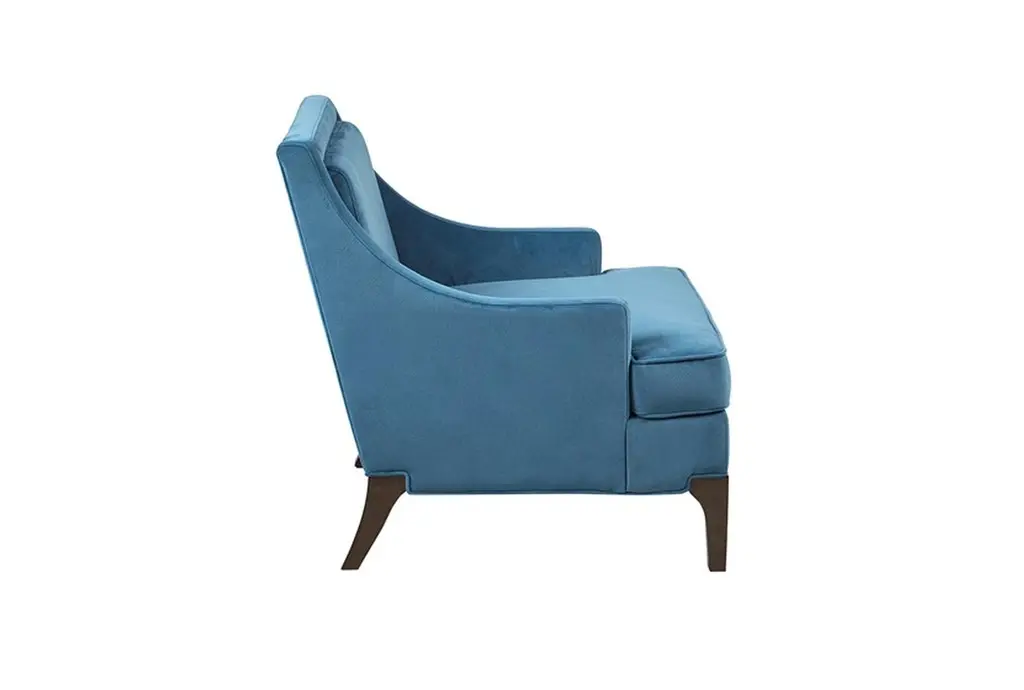 Anna Blue Fabric Accent Arm Chair adds traditional elegance with its rich blue upholstery and classic silhouette. This comfortable armchair features a timeless design with dark coffee tapered legs that create stunning contrast. This design is the perfect bedroom chair, reading chair, club chair or accent chair for living room.