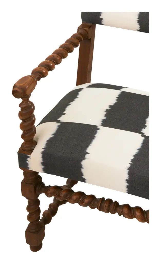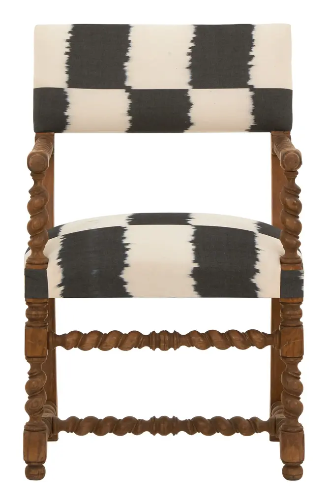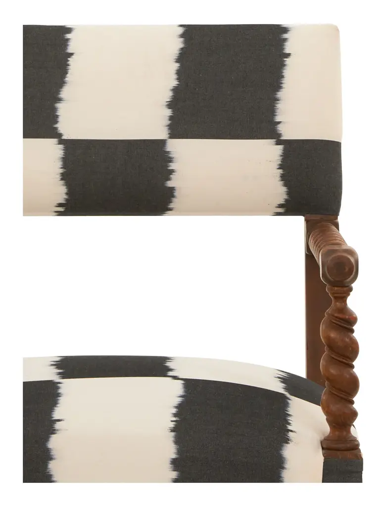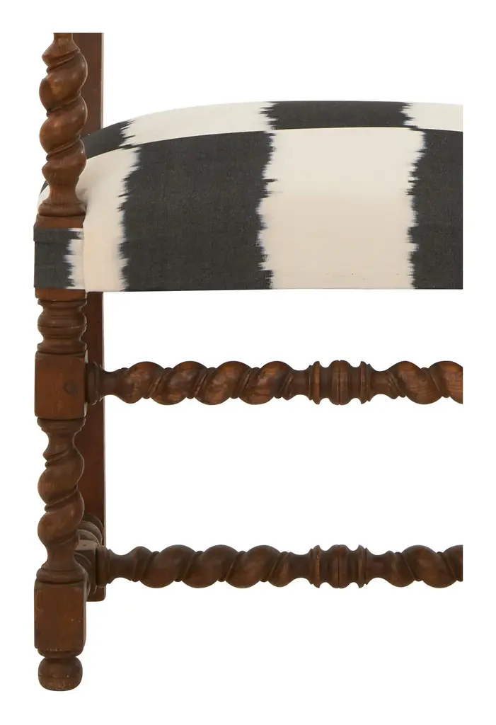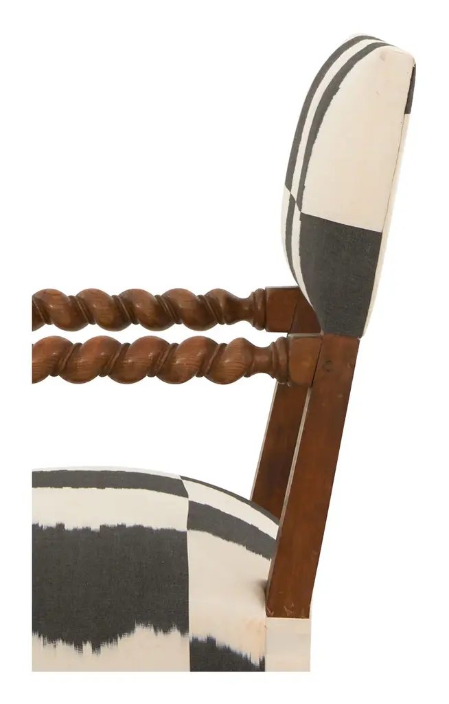 •up to 8 available (pending availability) •up to 8 available (pending availability) •reupholstered in black and white handwoven ikat fabric from uzbekistan•patinaed wood finish•early 20th century•belgium Dimensions•23.5"W x 20"D x 28"H•seat: 15"D x 21.5"H •up to 8 available (pending availability) •up to 8 available (pending availability) •up to 8 available (pending availability)