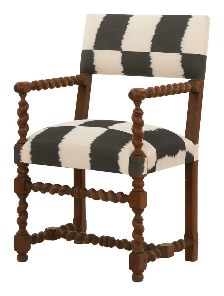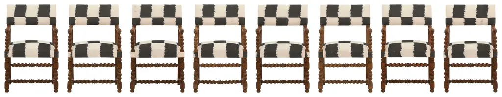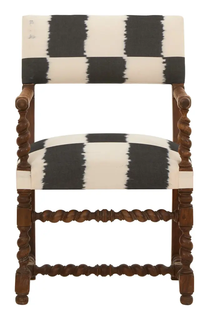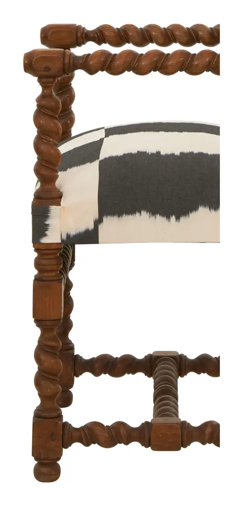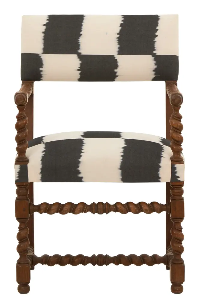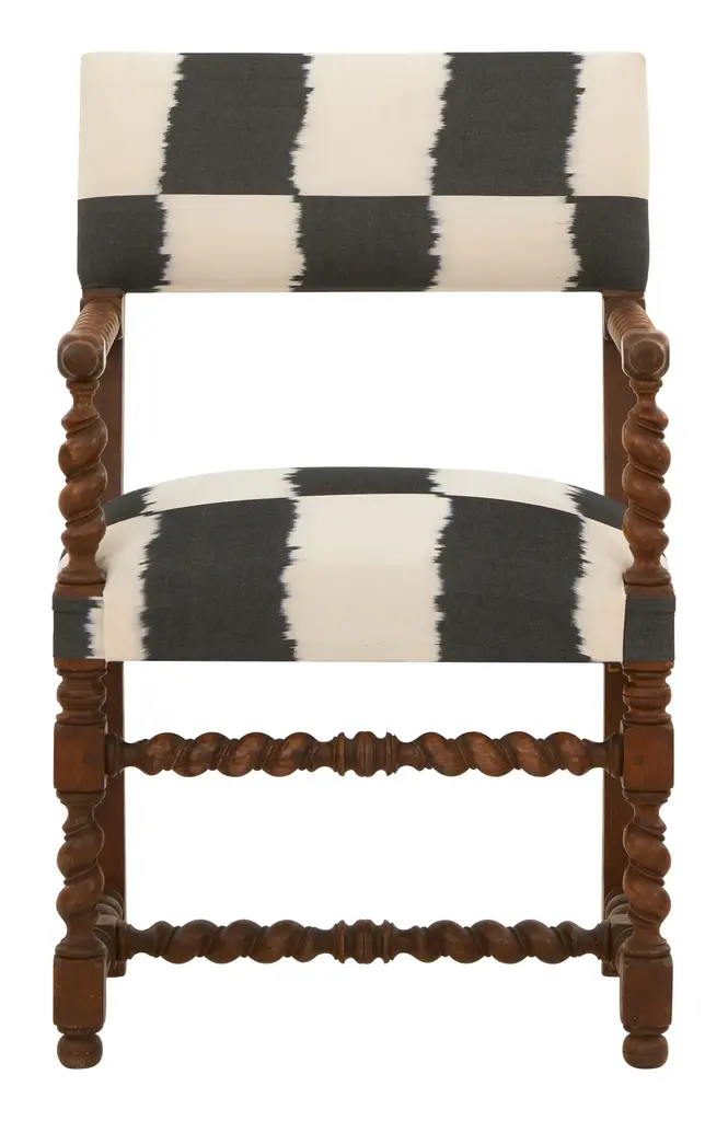 •up to 8 available (pending availability) •up to 8 available (pending availability) •reupholstered in black and white handwoven ikat fabric from uzbekistan•patinaed wood finish•early 20th century•belgium Dimensions•23.5"W x 20"D x 28"H•seat: 15"D x 21.5"H •up to 8 available (pending availability) •up to 8 available (pending availability) •up to 8 available (pending availability)