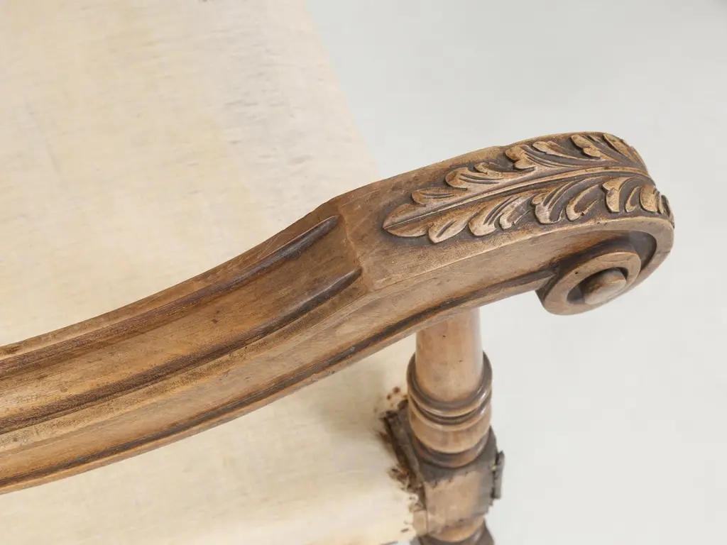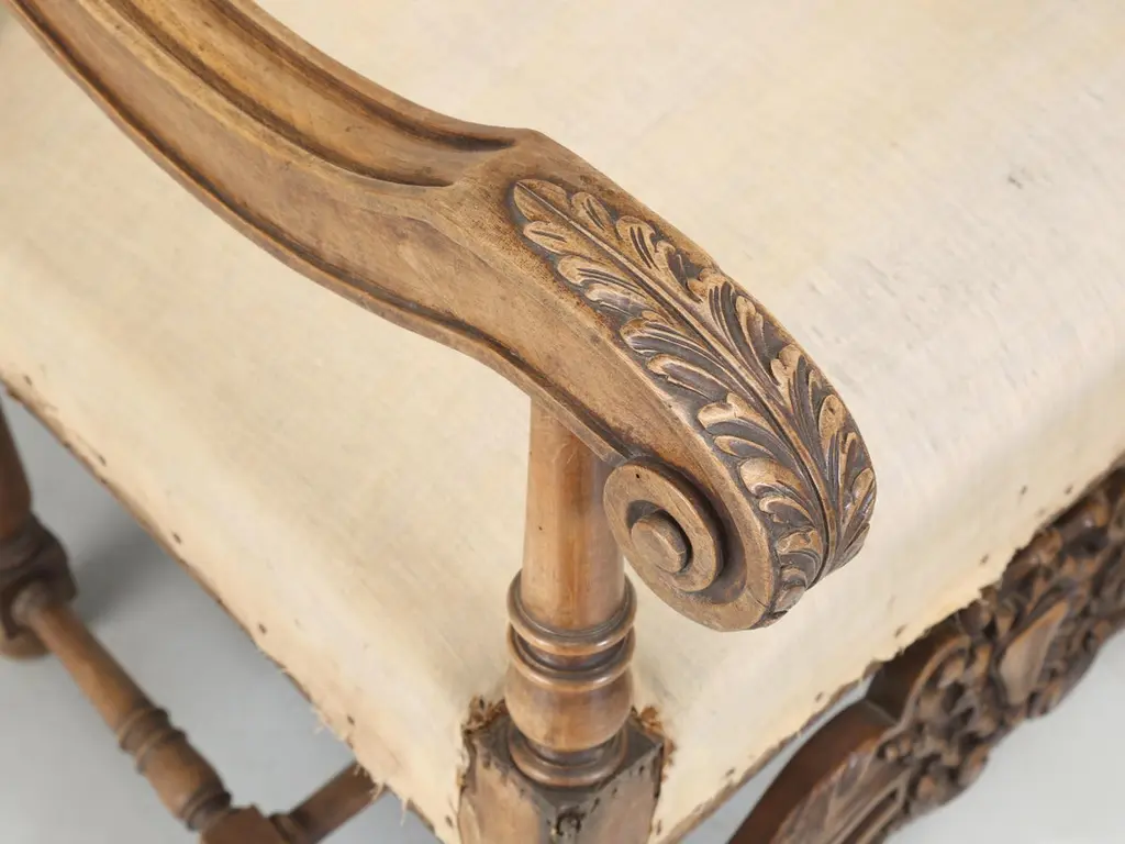 Antique Pair Of Italian Armchairs Hand Carved Walnut Require Restoration C1880s