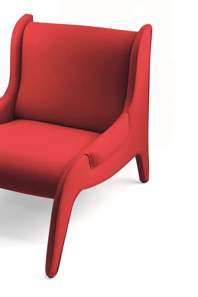 Antropus was created at the end of the 1940s when Marco Zanuso was commissioned to design the sets for the Italian-language version of Thornton Wilder's play The Skin of Our Teeth, which was dubbed "La Famiglia Antropus" in Italian, and was performed at the Piccolo Teatro in Milan. The architect worked with Arflex to produce an armchair fully upholstered in foam rubber; at the time, this material was considered highly innovative and was being promoted for use in domestic furniture-making for its expressive, and industrial ergonomic potential. The present-day version of this chair features polyurethane foam CFC free. This lends itself to creating a oversized and comfortable seat and back-rest that fit snugly into the slender, curving profile of the side panels. Cassina is making this model available in the original iconic red fabric upholstery.A design armchair upholstered entirely in leather or fabric. Added depth lends shape to the comfortable, roomy seat flanked by sensuously curved side panels.PADDING Polyurethane foam.INTERNAL STRUCTURE Tubular steel frame with elastic webbing.UPHOLSTERY Also available, iconic edition upholstered in red wool.