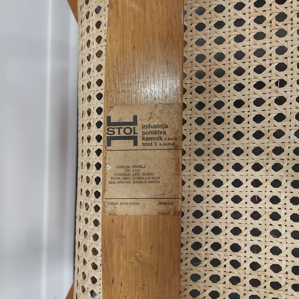Armchair designed by Mr. Uršič and produced by factory called STOL Kamnik in 1970s Slovenia/Europe.The chair could be said to be an iconic piece as it embodies style and comfort.It can easily represent a central piece of furniture that will always be admired.A very pleasant sitting height that enables relaxed sitting and at the same time the right posture of the spine.Material: Beech wood.