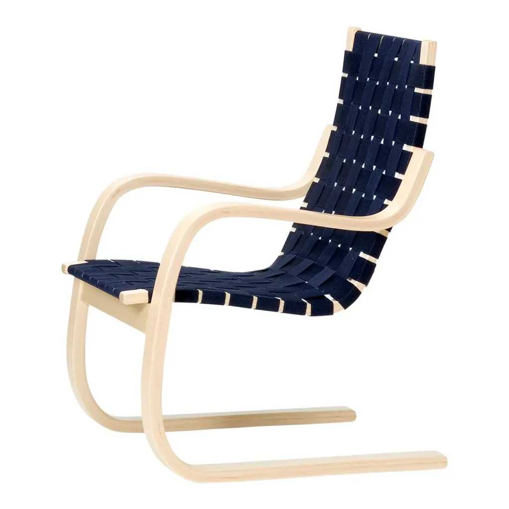 Armchair 406 combines simple elegance with comfort. Since wood changes over time, the armrests are formed from a single piece that is then split in half, ensuring that as the chair ages, it remains perfectly balanced. The cantilevered birch frame and linen webbed seat offer a high degree of comfort and relaxation; the natural materials yield in response to the body while simultaneously providing strength and stability.