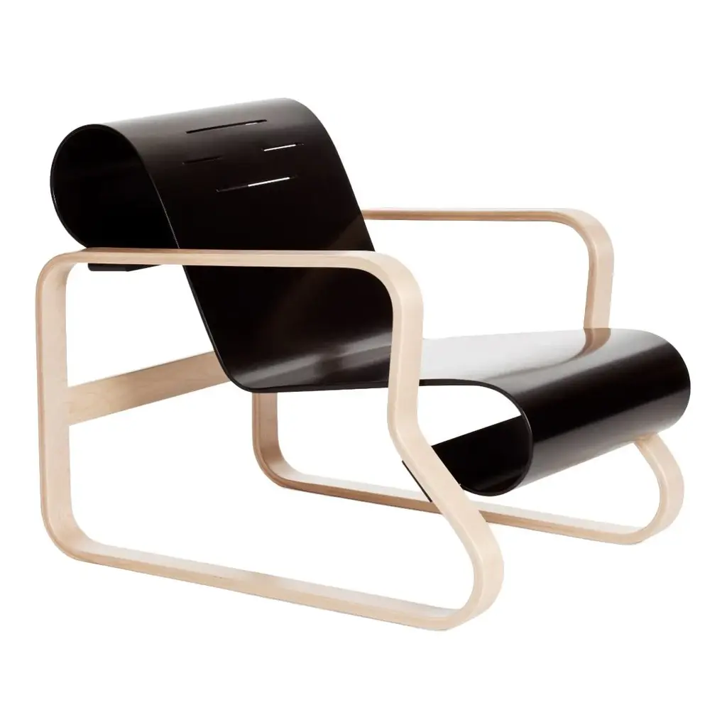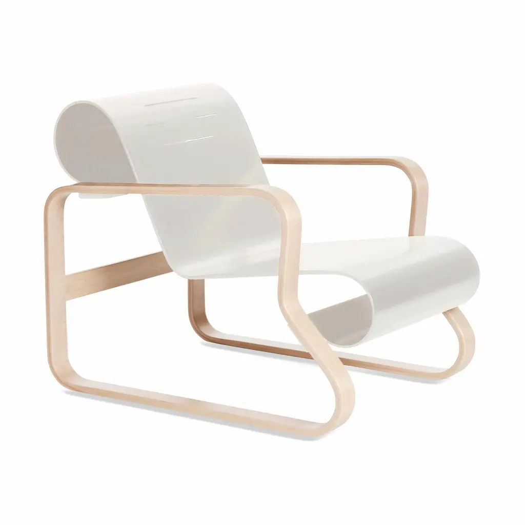 Combining a traditional outline with a light, organic form, this revolutionary interpretation of the club chair set new standards in modern furniture design. Fixed to the frame at only four points, Armchair 41's suspended seat appears to float and provides an astounding degree of elasticity. Since wood changes over time, the armrests are formed from a single piece that is then split in half, ensuring that as "Paimio" ages, it remains perfectly balanced. Designed by Alvar Aalto in 1932, Armchair 41 was created for the interior of a tuberculosis sanatorium in the Finnish city of Paimio and is considered one of Aalto's masterpieces.