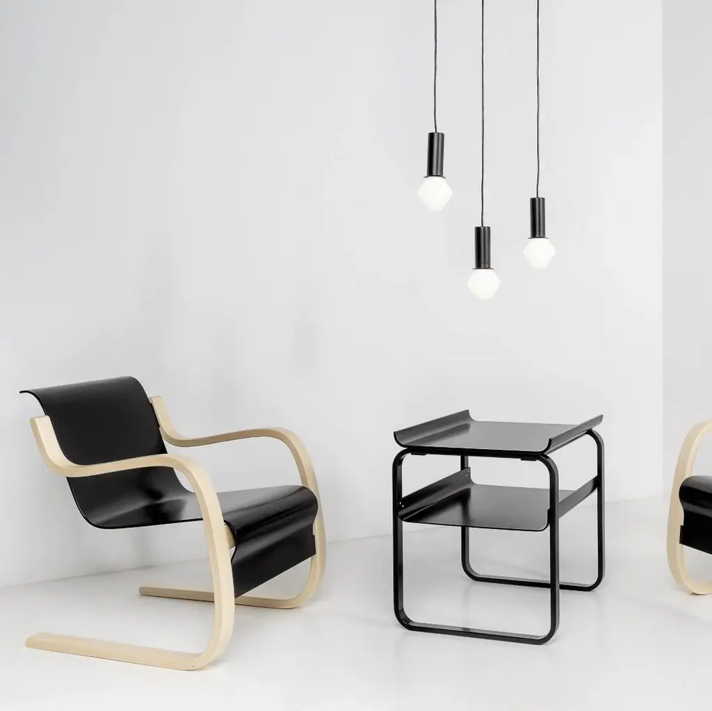Armchair 42 – or "Small Paimio" – was designed by Alvar Aalto for the Paimio Sanatorium in 1932. The frame is made from laminated birch shaped to produce a cantilevered chair; the seat and back are created from one piece of form-pressed plywood. The fluidity of the design creates a soft, comfortable place to sit. The result is an armchair without straight lines, an armchair of exceptional aesthetic appeal. Since wood changes over time, the armrests are formed from a single piece that is then split in half, ensuring that as the chair ages, it remains perfectly balanced.