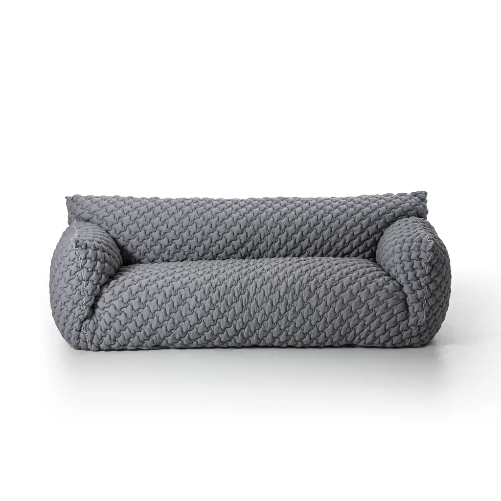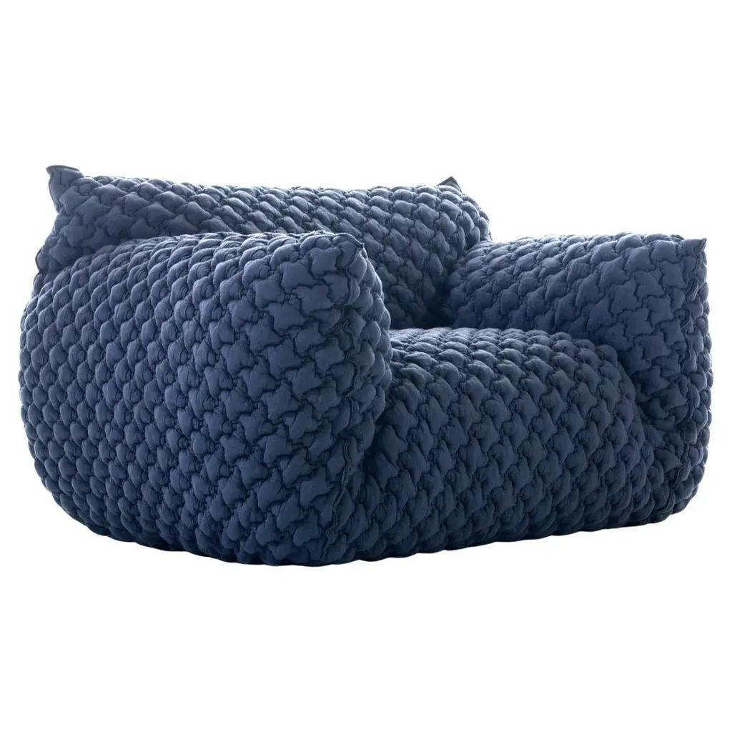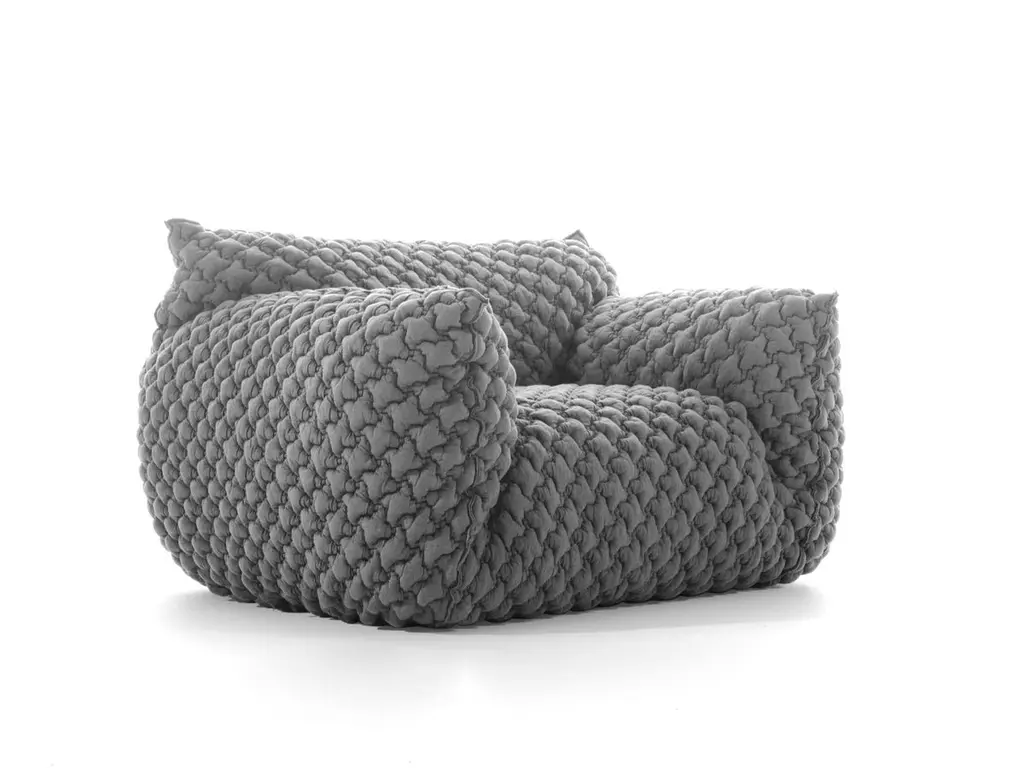 Gervasoni Nuvola 09 ArmchairDesign: Paola NavoneThe Nuvola collection is defined by its soft, inviting shapes that embody comfort and informality. The Nuvola 09 armchair has an aesthetic that invites you to sink in: the high armrests embrace a deep seat, creating a true cocoon effect that feels like a warm hug.This version is upholstered in grey 3D fabric, enhancing its visual softness with a contemporary, textured look that adds depth and versatility to any interior.Available in two sizes, the armchairs are padded with multi-density polyurethane foam for lasting comfort and durability. The upholstery includes a quilted layer filled with goose down and polyester fiber flakes, adding extra softness.The cover is fully removable, with visible stitching that outlines the armchair's silhouette, and is available in all fabrics from the collection, offering the utmost versatility.DimensionsLength: 145 cm / 57.1 inDepth: 110 cm / 43.3 inHeight: 85 cm / 33.5 inSeat height: 48 cm / 18.9 inMaterials & FeaturesMulti-density polyurethane foam paddingQuilted upholstery with goose down and polyester fiber flakesFully removable cover with visible stitchingUpholstery in grey 3D fabric (other fabrics available on request)