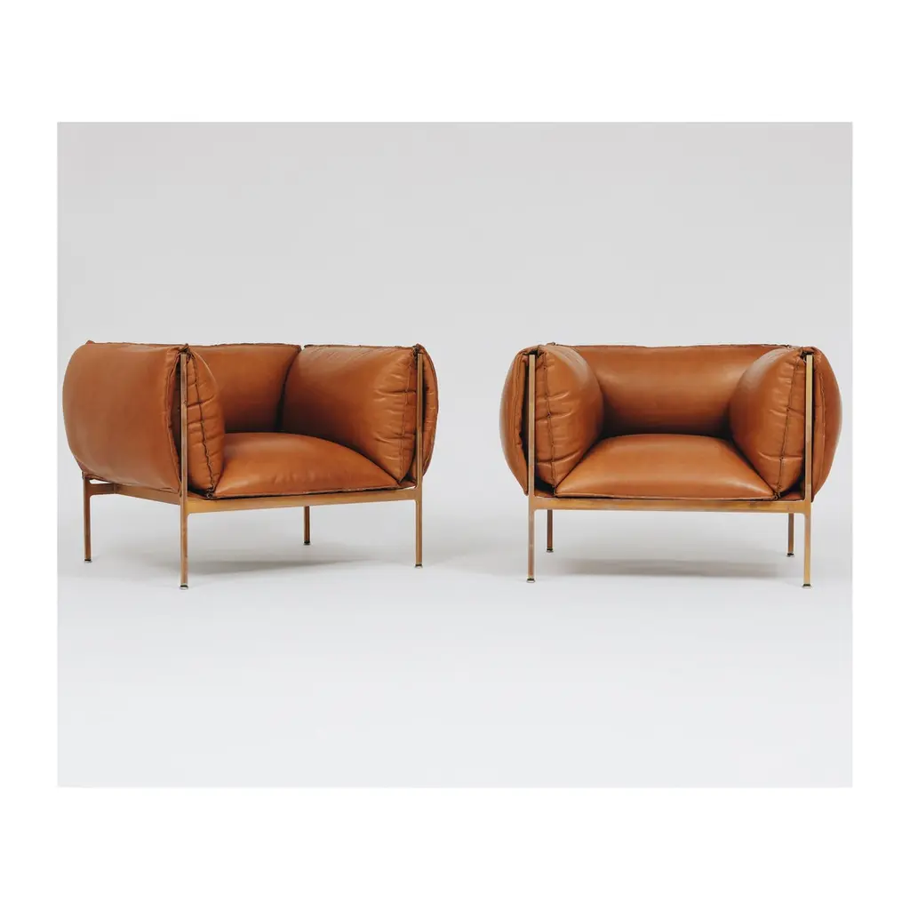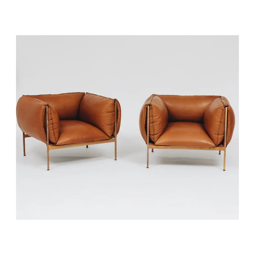 Armchair In Cognac Leather And Burnished Brass-Plated Laser-Cut Steel Frame