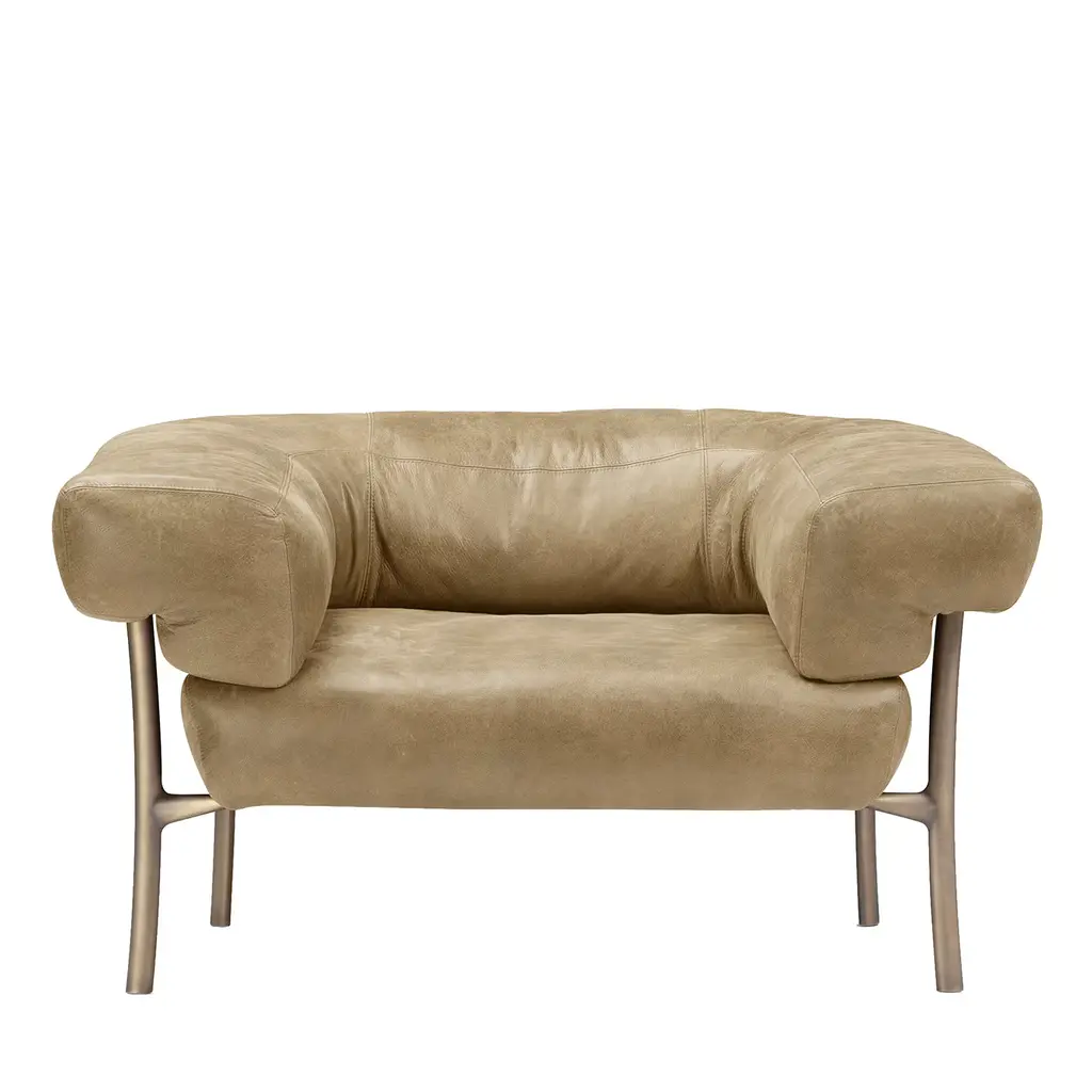Bulging over its edges, this contemporary single sofa seat by Klein Agency screams comfort. Puffy cushions hug the laser cut steel frame, creating a supple cocoon, demanding you to wallow in its softness. With its bulky front and bulging back, the sofa single self-indulgently loves all of its sides equally.