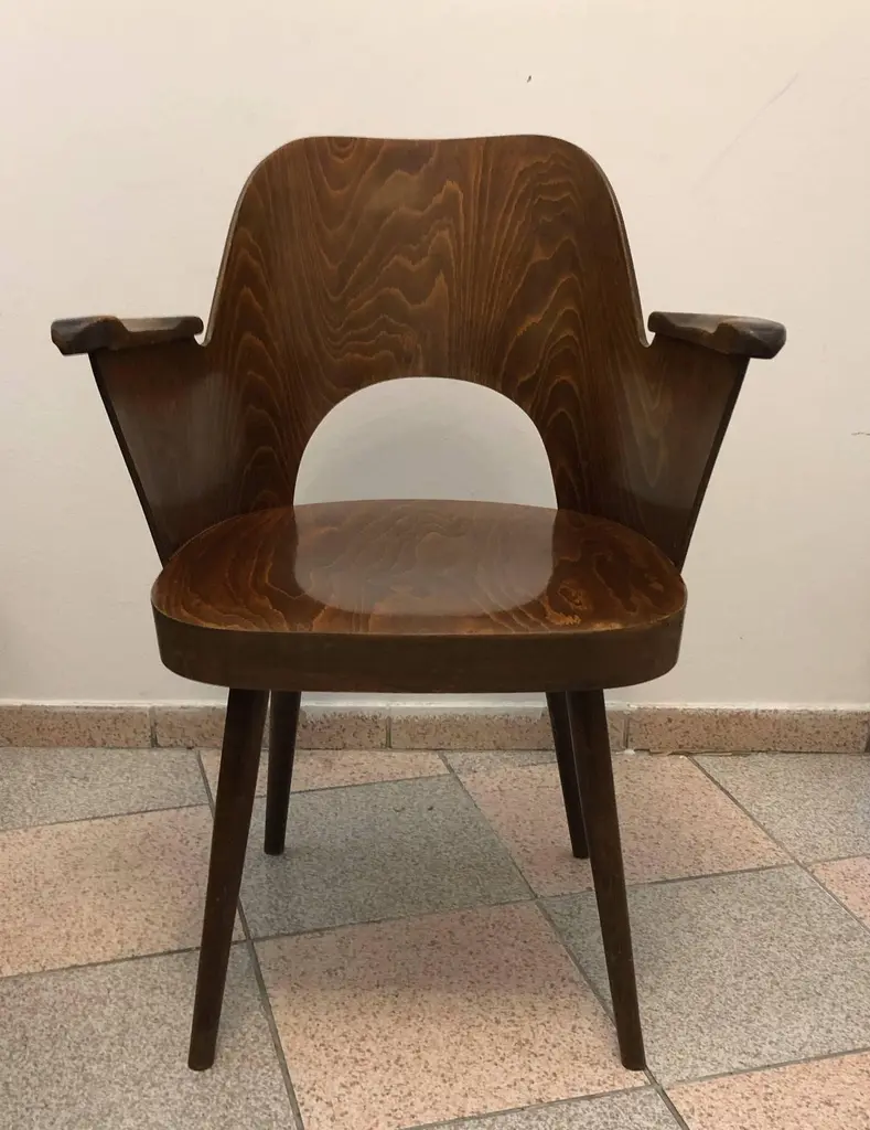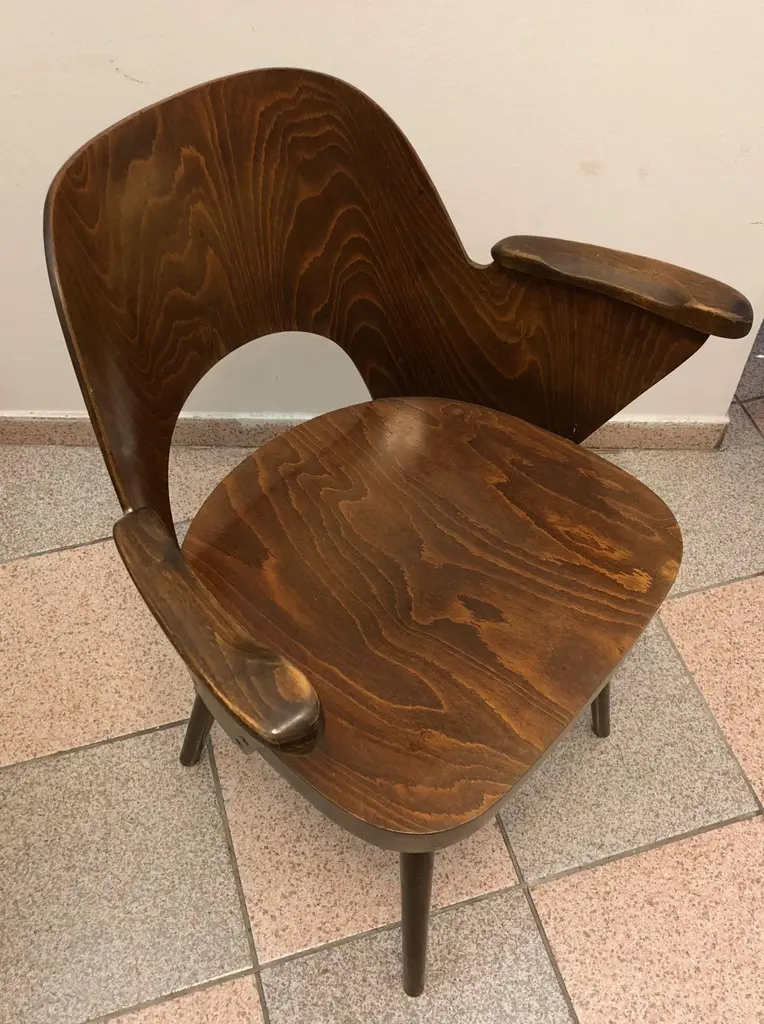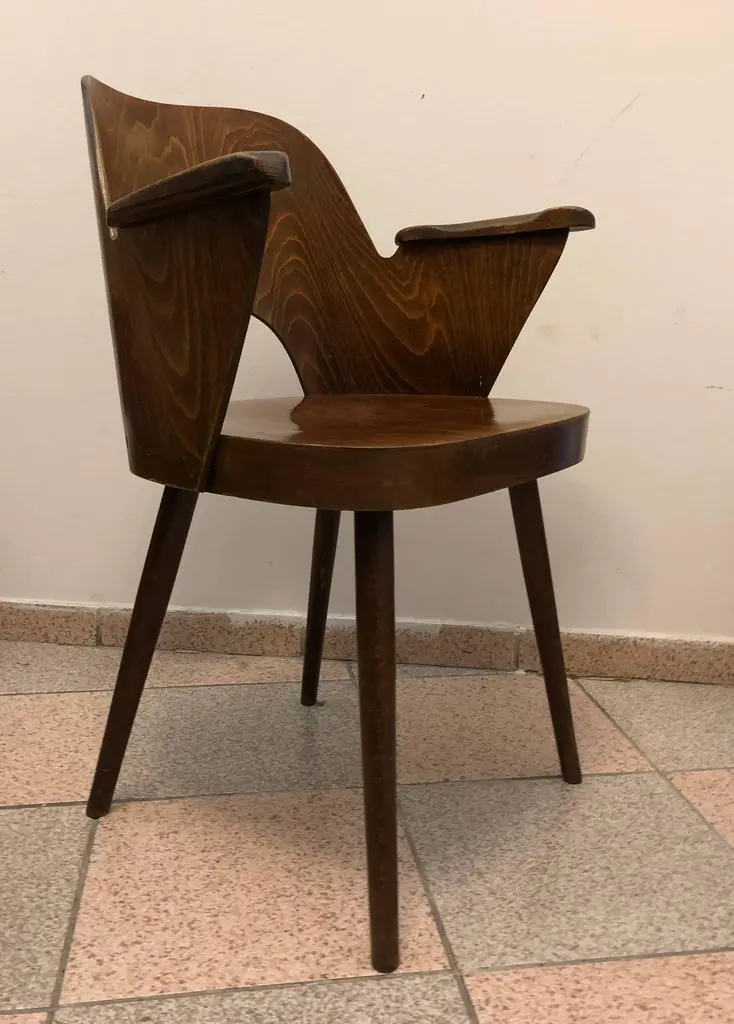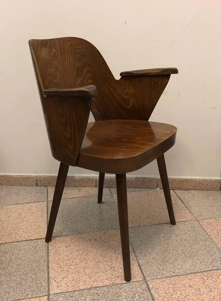 Beechwood or plywood walnut stained designed in the 1960s by Lubomír Hofmann and produced in Czechoslovakia by Ton furniture factory (formals Thonet).Chairs are still in original condition. Up to 8 pieces available. (On request even more).
