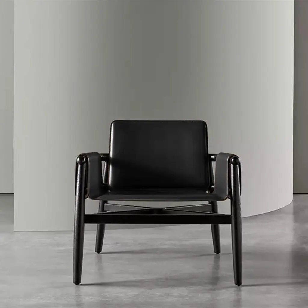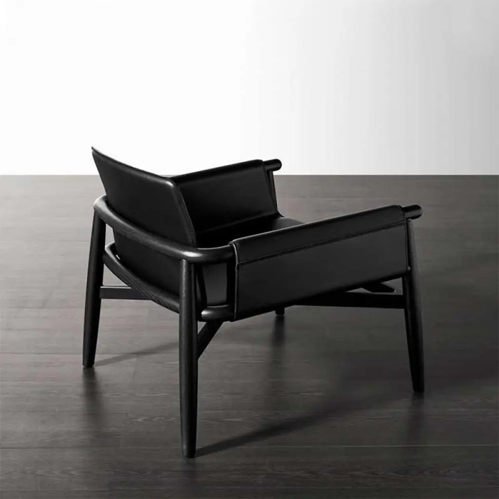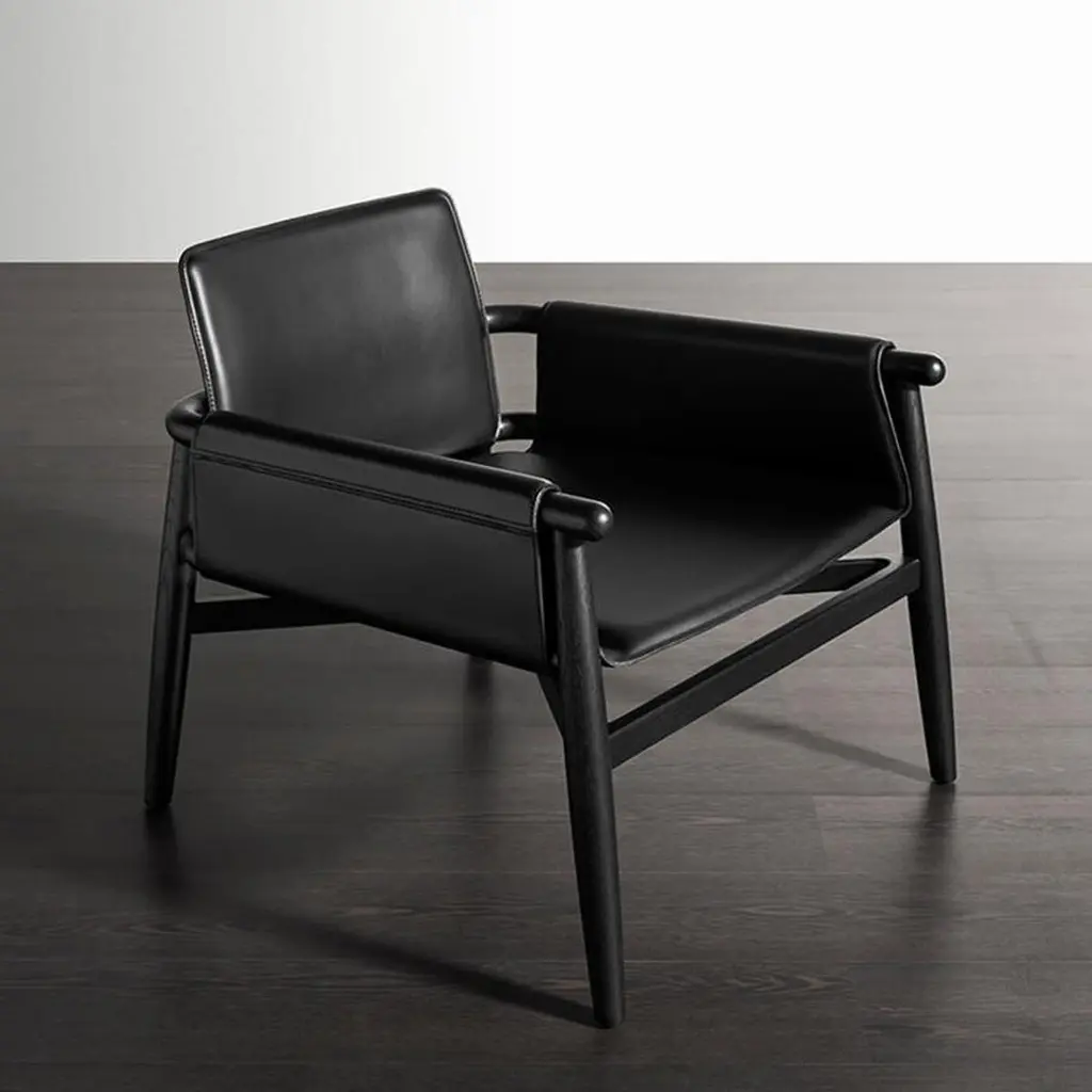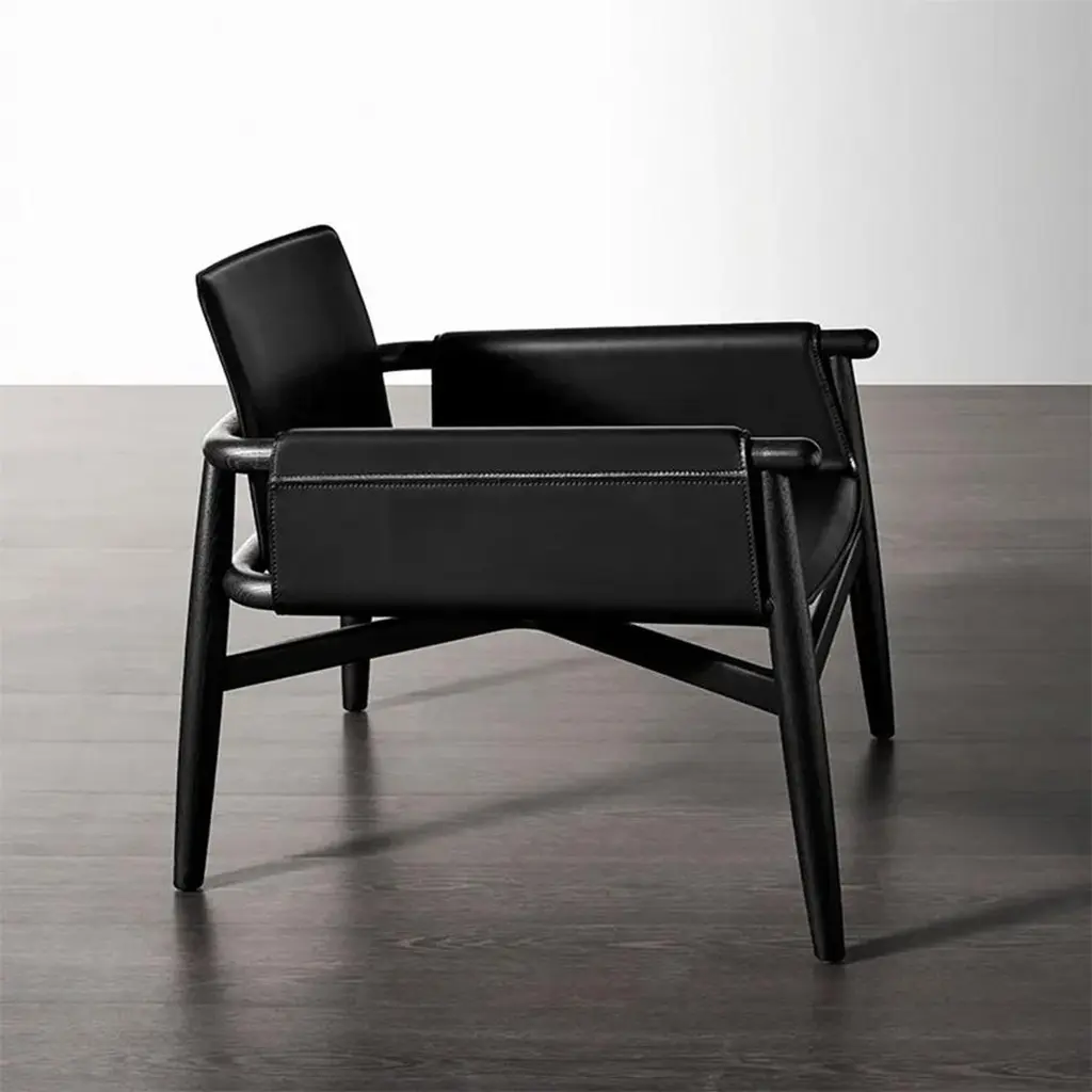 Armchair Arno Large with structure in solid oak in blackstained finish. Seat, backrest and armrests upholsteredand covered with black genuine italian leather.Also available with brown leather.