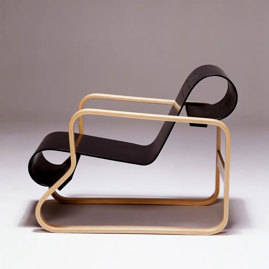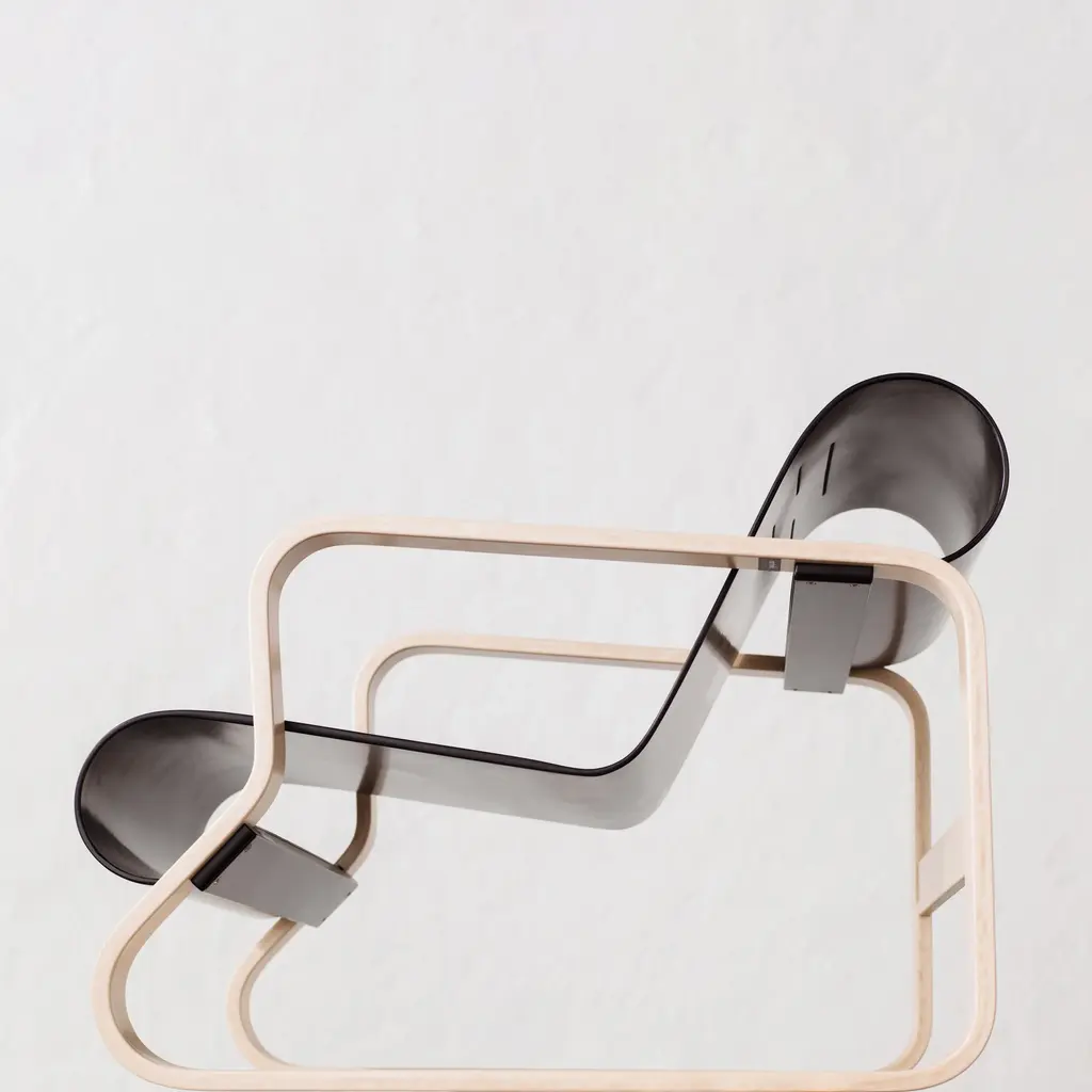 When Alvar Aalto’s statement-making Armchair 41 “Paimio” premiered in 1932, it was hailed as a revolutionary interpretation of the club chair and set new standards in modern furniture design. The chair, which is an object in MoMA’s collection, combines a traditional outline with a light, organic form. Armchair 41’s seat is fixed to the design's frame at only four points, creating the delightful illusion that the seat is floating. This construction also provides an amazing degree of elasticity. The armrests are made from a single piece of solid birch wood that is form-bent and then split in half. This ensures that over time, the Armchair 41 “Paimio” remains perfectly balanced. The elegant, sculptural seat and backrest are made from form-pressed birch plywood. Made in Finland, the Armchair 41 “Paimio” measures 25.25h x 23.5w x 31.5”d. The chair’s manufacturer, Artek, is represented in MoMA’s collection