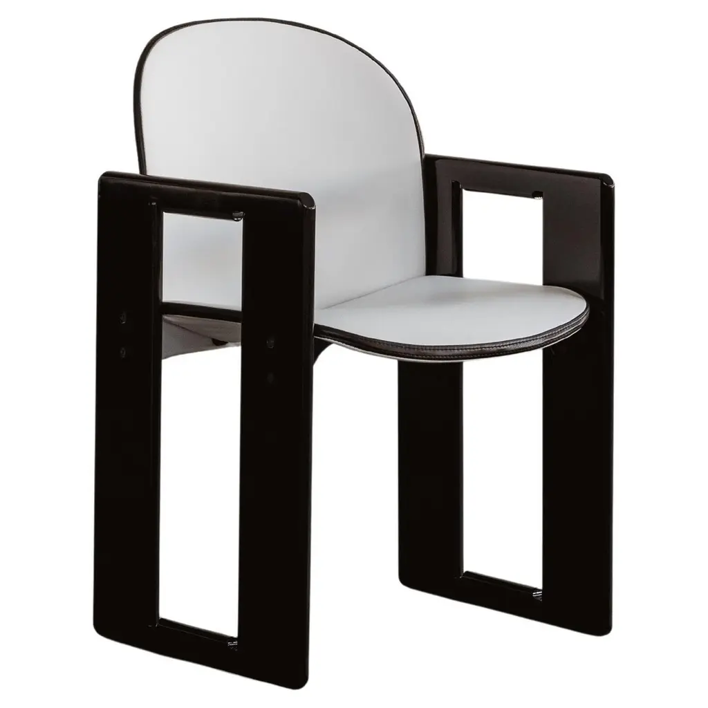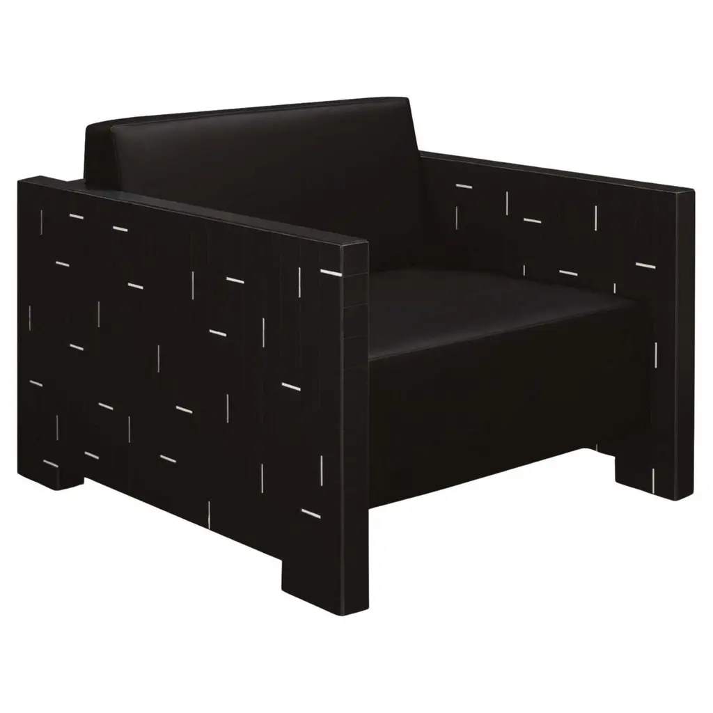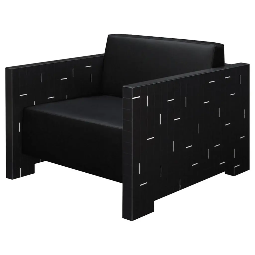 This armchair celebrates the namesake video games that appeared in the late '70s. Part of the Atari Collection, this striking piece features the harmonious combination of vertical and horizontal elements in a rigorous silhouette that is entirely upholstered in water-resistant, vegetable-dyed leather. The unique texture of the legs and armrests shows cuts that reveal the thickness of this exquisite leather, while continuing the theme of geometric juxtapositions, reminiscent of the perforated cards used in early computers.