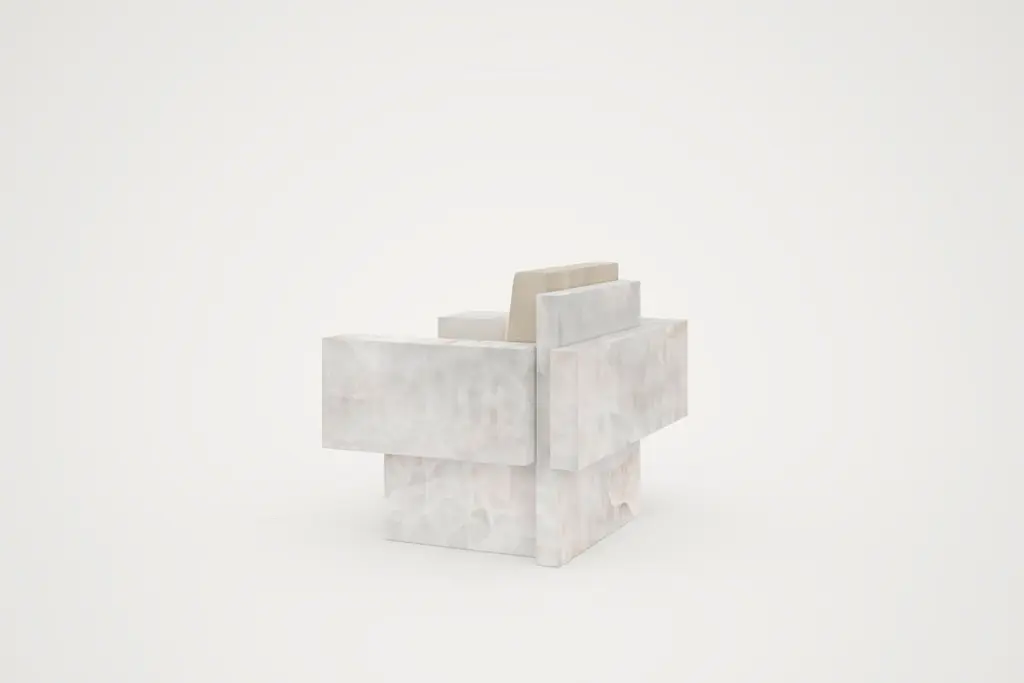 Auguste Piece 01 White Onyx Limited Edition Armchair by Tristan Montabord-MarcLimited Edition Of 12 PiecesDimensions: D 69 x W 85 x H 68 cm. Materials: Onyx.Also available in Zericote wood and bronze. Prices may vary. Please contact us.Auguste is a furniture collection designed with the ambition of highlighting the beauty of raw materials and the simplicity of form.Each piece explores a balance between massive volumes and subtle details, revealing the craftsmanship of artisans whose every gesture brings life and character to the material.The collection includes six distinct creations, each marked by asymmetrical shapes and contrasting surfaces.Auguste offers an approach to furniture where each element is crafted to endure, embodying a vision of lasting aesthetics.Through this collection, the studio examines the relationship betweenmaterial and space, inviting a rediscovery of the essential, of the passage of time, and of the moments that sometimes slip away.Tristan Montabord-Marc was born and raised in France. After spending several years working in residential project development, he founded his own design studio in 2021.From a young age, he has been attentive to every detail of his surroundings. He is sensitive to structures, observes the richness of volumes, the unique qualities of materials, and perceives the properties of light on surfaces.Tristan Montabord-Marc is intuitive and perceptive. He is convinced that there is a way to make the world, in some sense, more beautiful. His desire and need to be surrounded by beautiful spaces that significantly influence daily life experience drive him to continuously refine his perspective and conceptual language.The pursuit of timeless minimalism and discreet luxury is at the very core of his work. He designs interiors where architecture and design pay special attention to detail, enhanced by craftsmanship. Drawing from his creative reflections, he decided to launch his first limited edition furniture collection, named "Auguste". This collection opens a dialogue with his personal imagination, resulting in work that is both aesthetic and narrative.