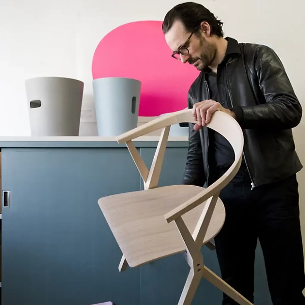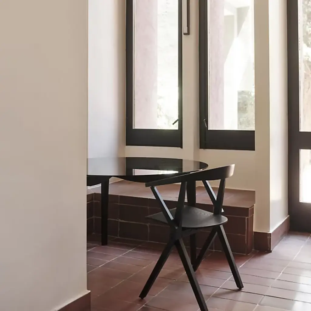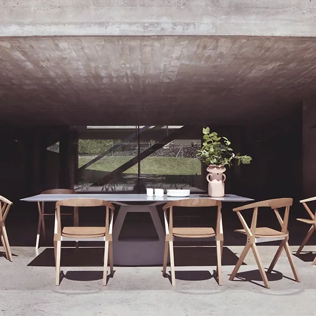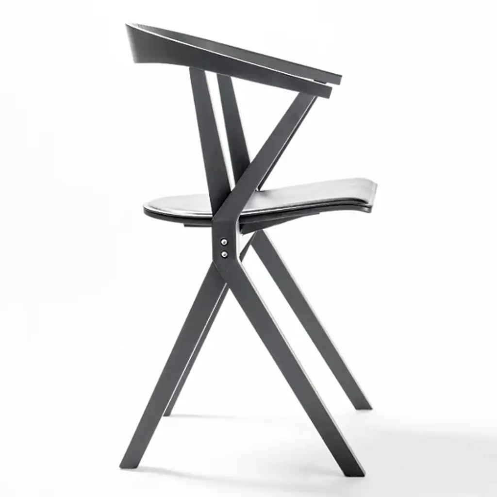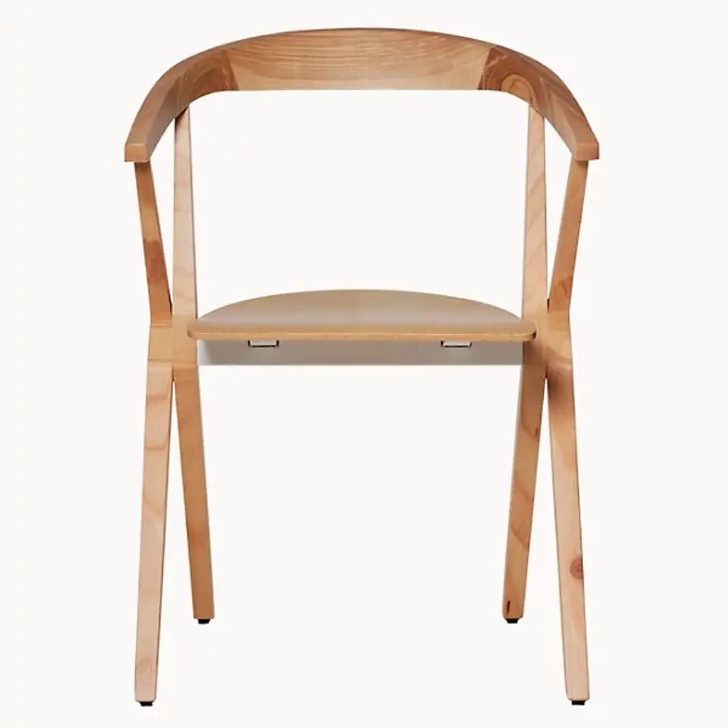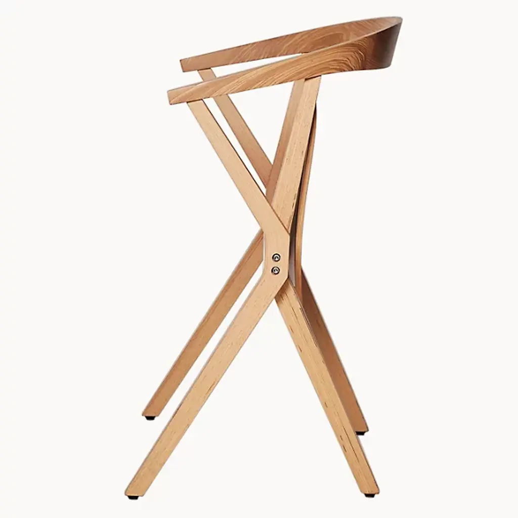 Provide a refined accompaniment to inside spaces with the B Folding Armchair, Set of 2 from BD Barcelona. A calculated and award-winning design from the mind of Konstantin Grcic and the first in the Extrusion collection, its complex capabilities are hidden playfully in its externally simple design, making it a standout for established gathering spaces or impromptu meetings. Fashioned from slender beams of robust wood set atop felt glides, four angular legs ascend to a foldable seat with cast aluminum reinforcement, while an arcing back offers simple but standout support. The seats can also be stacked depending on the space available, adding comfort and style whenever they are taken out and deployed.