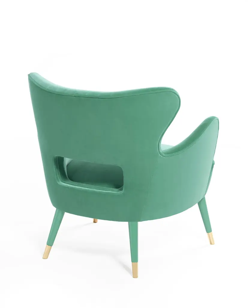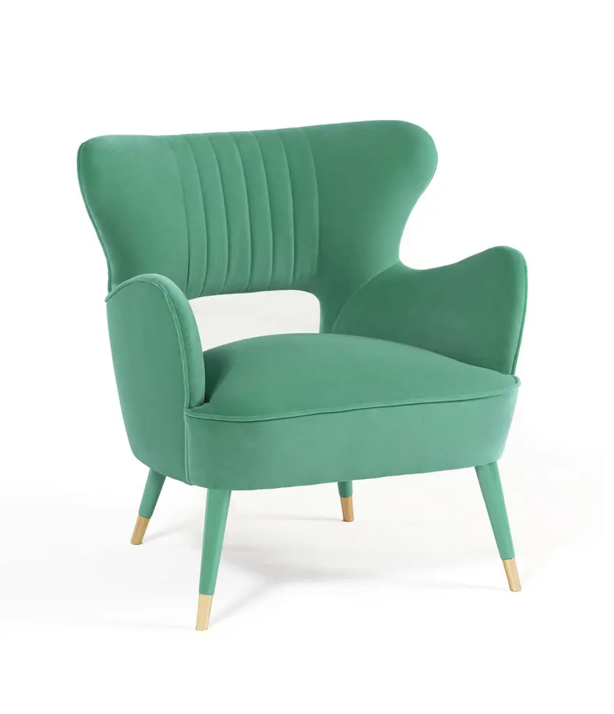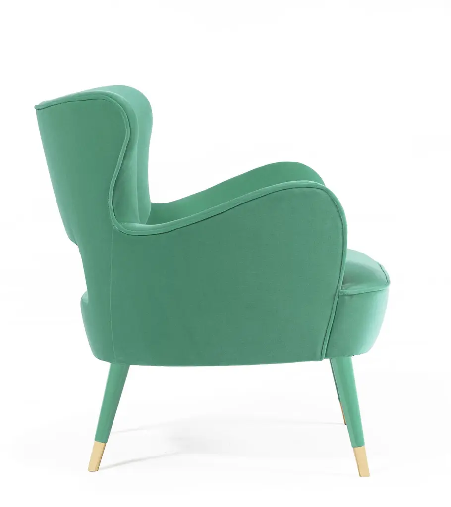 Babe Armchair by MunnaDimensions: D 69 x W 69 x H 74 cm. SH: 44 cm.Materials: Solid wood, foam, brass, and upholstery.Finish: Cotton Velvet Green Duck Egg, lacquer legs, and polished brass feet cover.Available in all Munna fabrics except Wild Silk. Available in client’s ownmaterial. Available upholstered, Rosewood or Ebony veneer, solid Walnut, Wengé stain, or lacquer in all RAL colors, in matt or gloss. Fire retardant interlining is available on request. Handmade in Porto. Please contact us.Established in Porto in 2008, Munna is a furniture design brand renowned for creating handmade upholstery with unmatched craftsmanship, seamlessly blending noble materials and timeless design, for both commercial and residential projects.Made by hand in Porto, Munna’s pieces honor the profound heritage of craftsmanship, while drawing inspiration from history’s most influential artistic periods. Munna’s pieces are made of the finest fabrics such as cotton velvet, twill, leather, and silk; the finest wood veneers, such as ebony, walnut, and rosewood; sumptuous gold, silver, and copper leaves, metal details in brass, nickel, and copper, and superior lacquers.