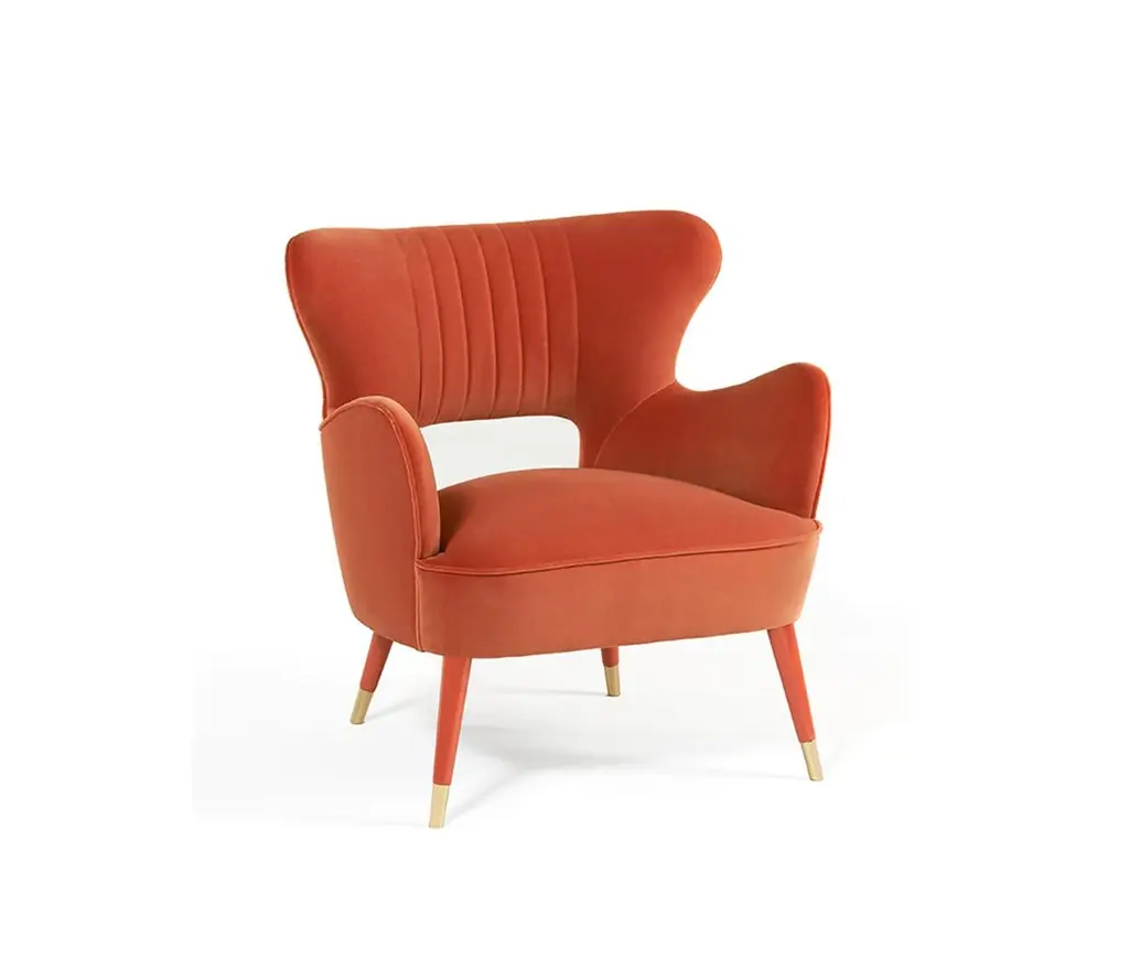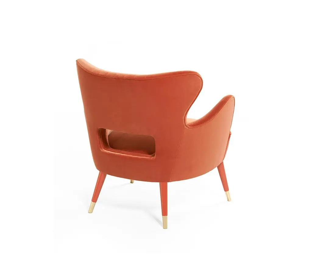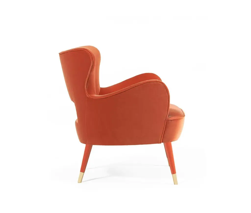 Babe Armchair by MunnaDimensions: D 69 x W 69 x H 74 cm. SH: 44 cm.Materials: Solid wood, foam, brass, and upholstery.Finish: Cotton Velvet, ref. Peach, CV20, peach gloss lacquer legs, and polished brass feet covers.Available in all Munna fabrics except Wild Silk. Available in client’s ownmaterial. Available upholstered, Rosewood or Ebony veneer, solid Walnut, Wengé stain, or lacquer in all RAL colors, in matt or gloss. Fire retardant interlining is available on request. Handmade in Porto. Please contact us.Established in Porto in 2008, Munna is a furniture design brand renowned for creating handmade upholstery with unmatched craftsmanship, seamlessly blending noble materials and timeless design, for both commercial and residential projects.Made by hand in Porto, Munna’s pieces honor the profound heritage of craftsmanship, while drawing inspiration from history’s most influential artistic periods. Munna’s pieces are made of the finest fabrics such as cotton velvet, twill, leather, and silk; the finest wood veneers, such as ebony, walnut, and rosewood; sumptuous gold, silver, and copper leaves, metal details in brass, nickel, and copper, and superior lacquers.