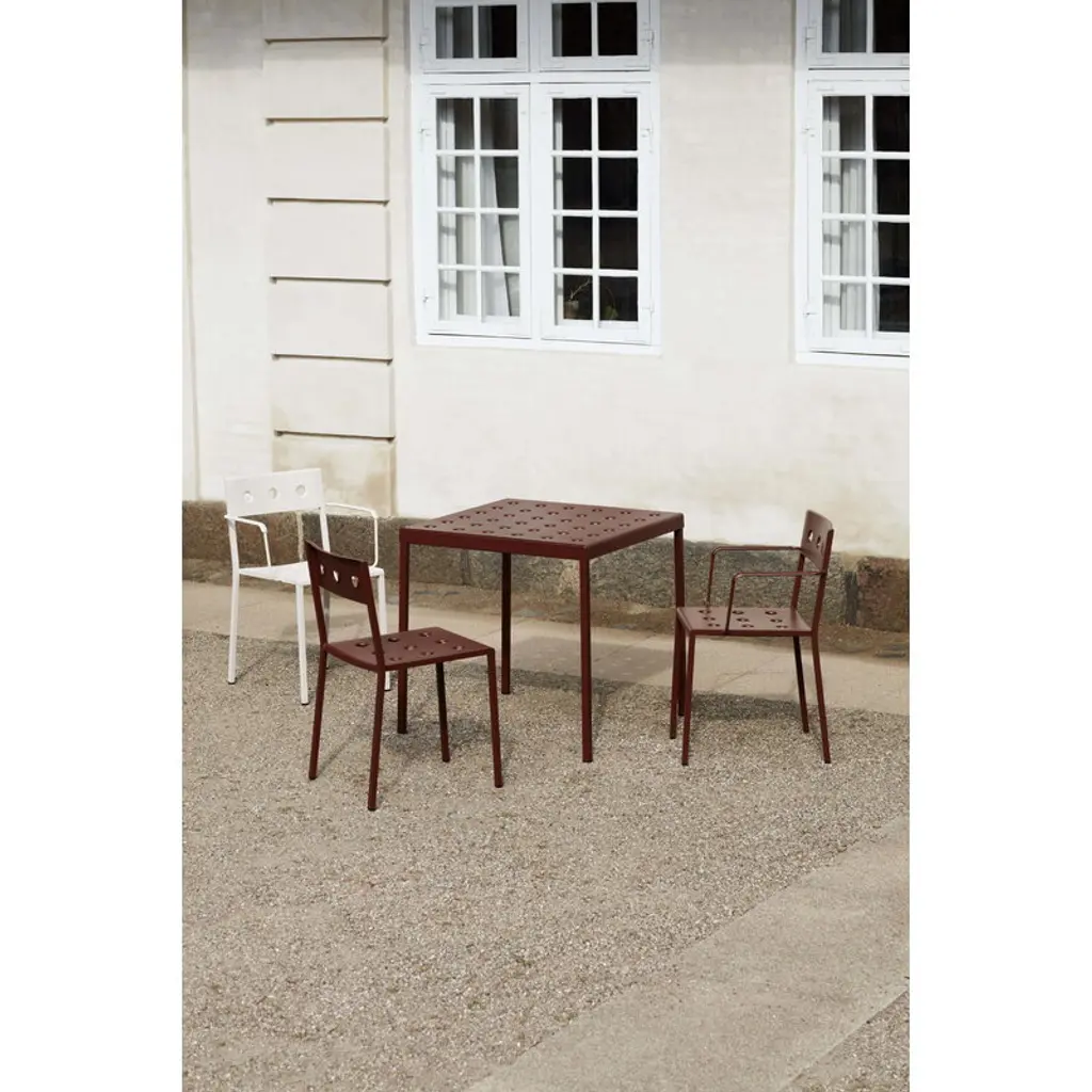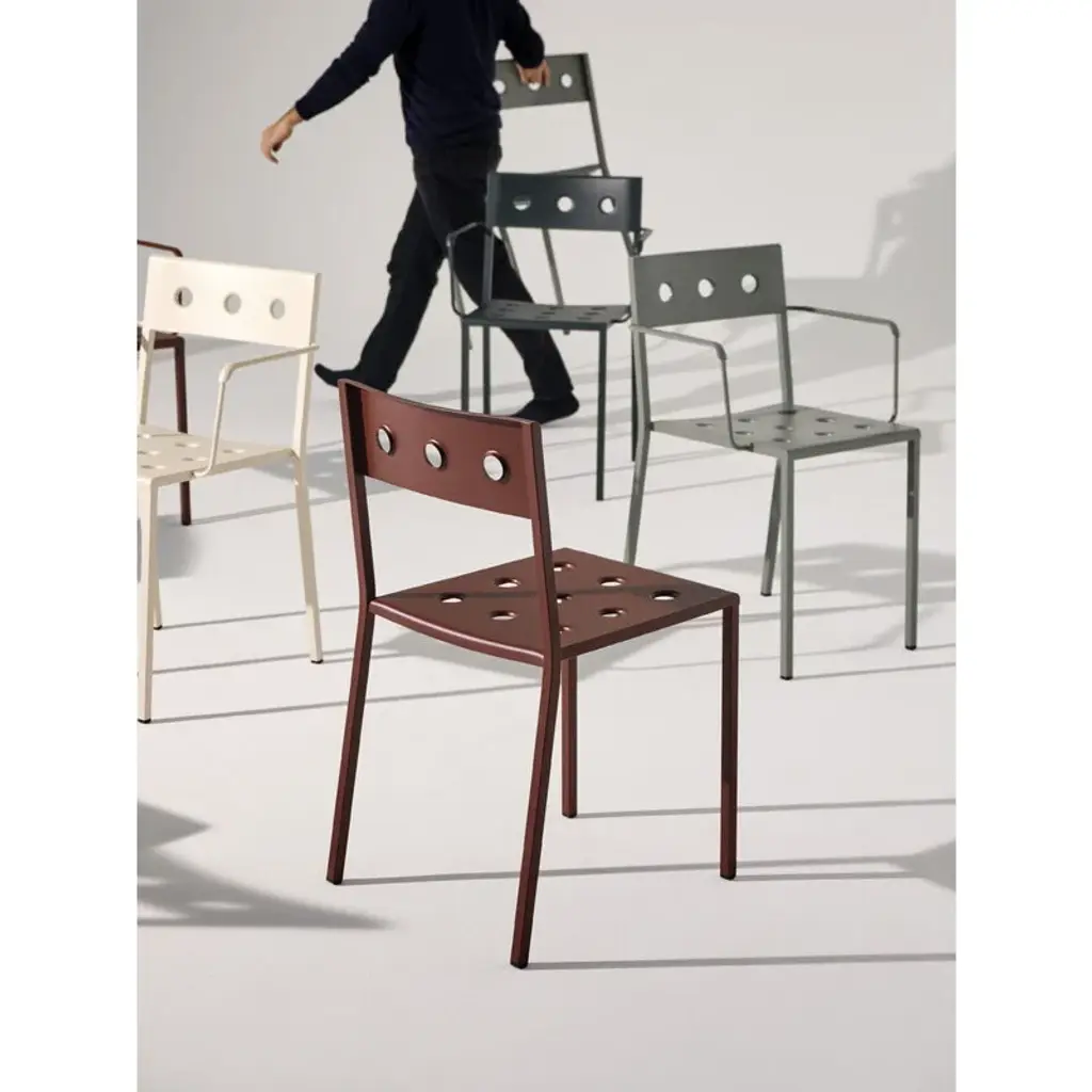 HAY’s Balcony armchair is part of a clever collection of outdoor furniture designed by the Bouroullec brothers. Made of thin steel sheet, the elegant armchairs are incomparably light and easy to move, and they can also be stacked on top of each other to save space, making them a perfect addition to the balcony, the garden or a patio. The round holes pressed through the steel plate provide multiple functions: they add character and softness to the geometrical design and allow rainwater to drain off the chair's surface, while also strengthening the structure of the furniture. Featuring a weather-resistant coating the Balcony collection is as carefree as it looks. Add some extra comfort and complete the look with Balcony cushions, sold separately.
