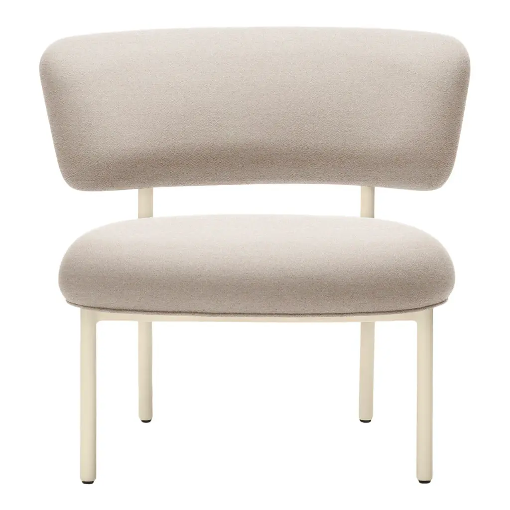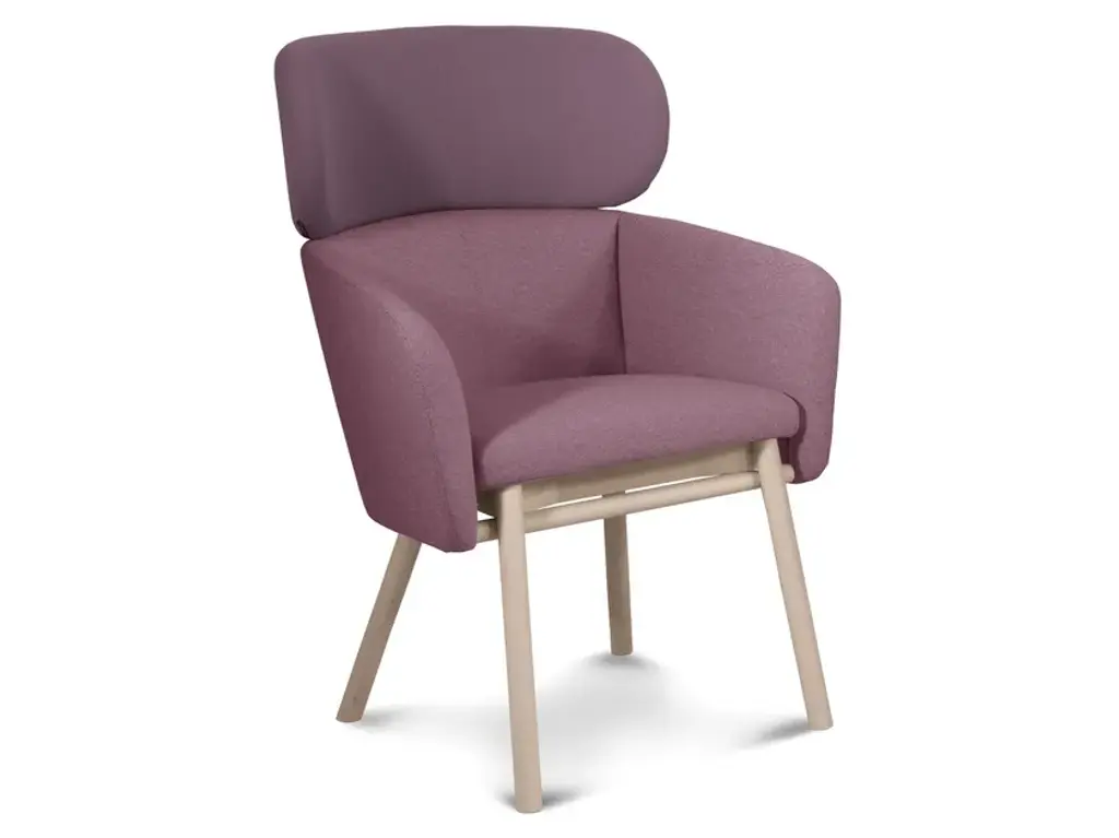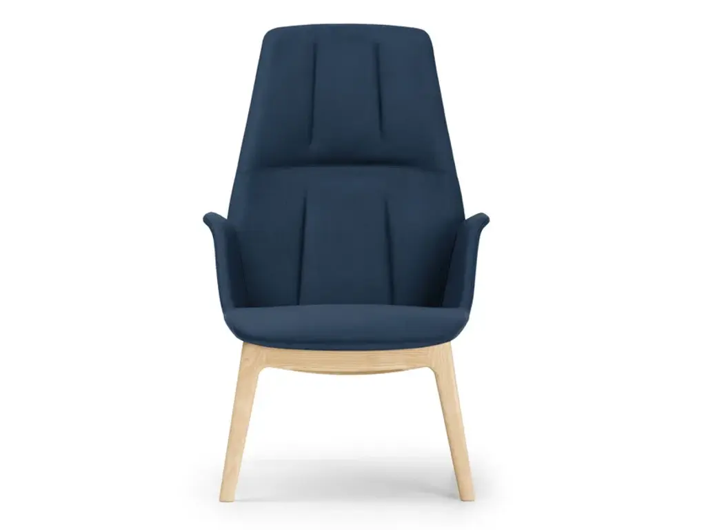A celebration of refined craftsmanship, this chair will be \na comfortable seating space to an elegant interior. It comprises a bleached beechwood structure boasting four slanted legs and sustaining a large and welcome seat cushion with back and armrests. Padded with polyurethane and dacron, the cushion's fabric upholstery is in two different hues of blue. Other finishes and covers are available upon request, please ask the Concierge for details.