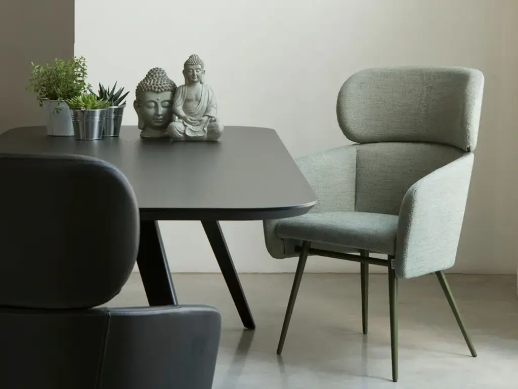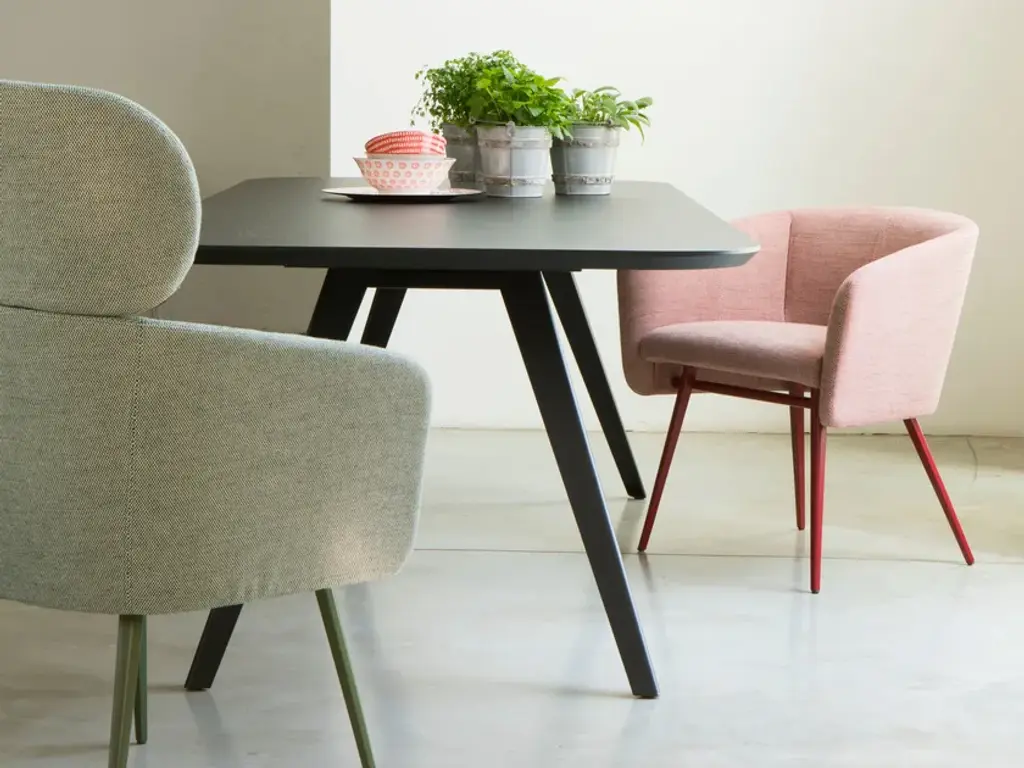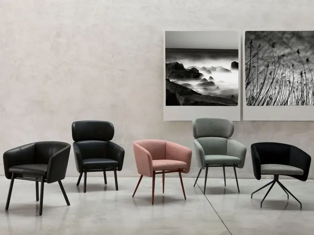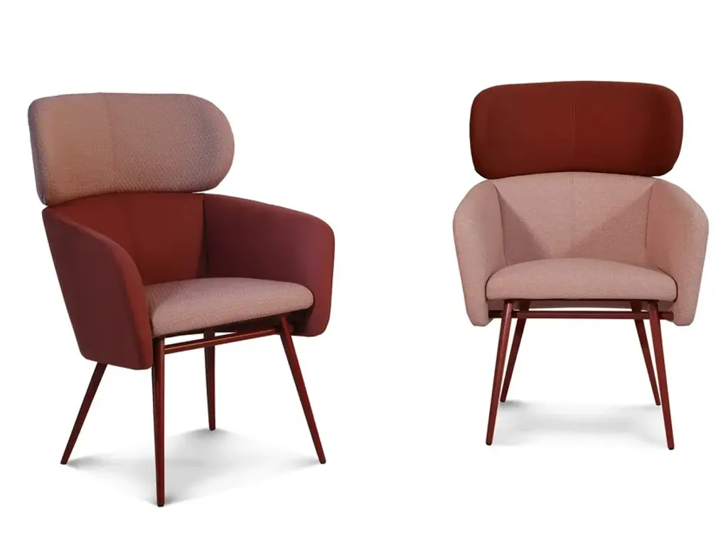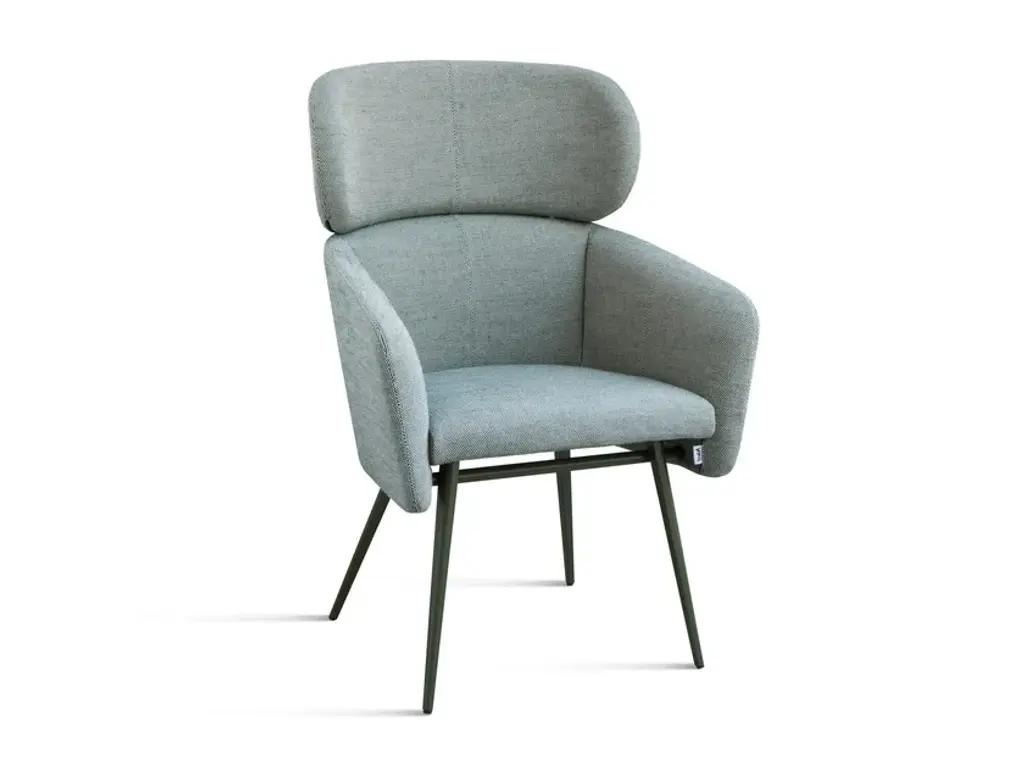 Upholstered armchair with high back, armrest and wooden or painted metal legs from the BALÙ collection, designed by Emilio.