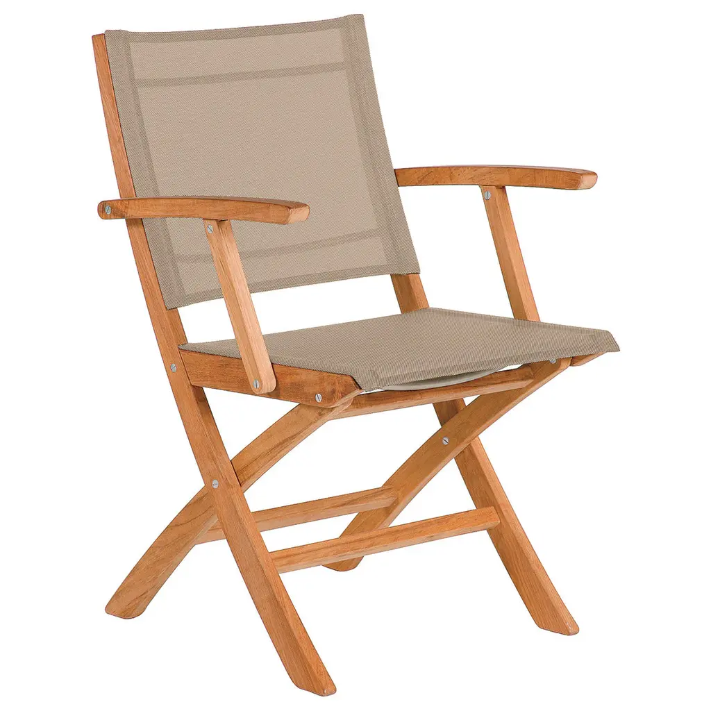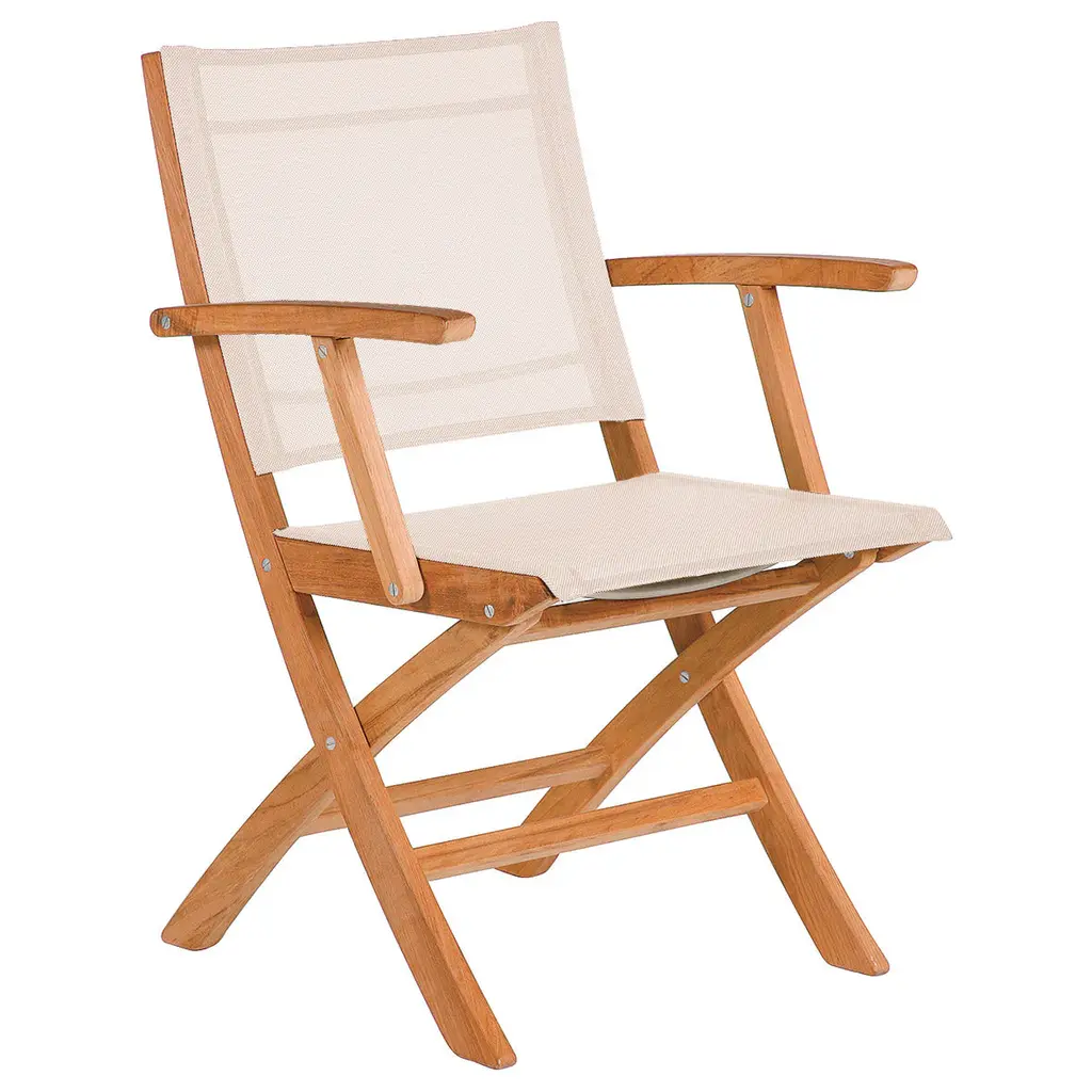 This is one of our very popular folding chairs with flush stainless steel fittings and Textilene® slings. There is a mechanism to lock the chair in the open position and the chair folds by lifting the seatPlease Note: Fabrics, canopies, cushions, covers, special order sling colors, and special order finishes are considered customized and may have longer lead times. These items cannot be cancelled, returned, or exchanged.