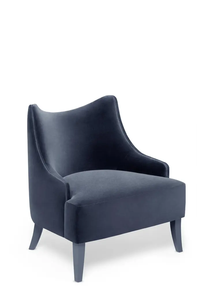 Becomes Me Armchair by MunnaDimensions: D 75 x W 75 x H 82 cm. SH: 43 cm.Materials: Wood, foam, brass, and upholstery.Finish: Cotton Velvet, wood lacquer legs, and plated nickel upholstery nails. Available in all Munna fabrics except Wild Silk. Available in client’s ownmaterial. Available upholstered, Rosewood or Ebony veneer, solid Walnut, Wengé stain, or lacquer in all RAL colors, in matt or gloss. Fire retardant interlining is available on request. Handmade in Porto. Please contact us.Established in Porto in 2008, Munna is a furniture design brand renowned for creating handmade upholstery with unmatched craftsmanship, seamlessly blending noble materials and timeless design, for both commercial and residential projects.Made by hand in Porto, Munna’s pieces honor the profound heritage of craftsmanship, while drawing inspiration from history’s most influential artistic periods. Munna’s pieces are made of the finest fabrics such as cotton velvet, twill, leather, and silk; the finest wood veneers, such as ebony, walnut, and rosewood; sumptuous gold, silver, and copper leaves, metal details in brass, nickel, and copper, and superior lacquers.