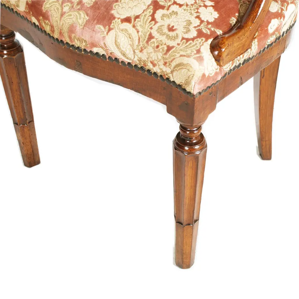 no. 3 Louis XVI-style bergere seats by TESTOLINI FRERES Venise from the late 1800s , early 1900s , in hand-carved walnut, with spring seats. Polished with shellac and wax.ABOUT TESTOLINI BROTHERS-TESTOLINI FRERES-TESTOLINI & SALVIATIFratelli Testolini saw its birth as a carpentry-cabinetmaking company; its owners were not ordinary personalities and immediately began to introduce new fashions in furnishings. The period chosen was not among the most propitious - shortly thereafter there would be the uprisings of 1848 and the famous revolt of Manin and the Republic of San Marco -, but the Testolini were not discouraged and serenely continued their production, seizing immediately the fresh artistic eclecticism that invaded the world from the mid-19th century, starting to conceive and produce original and imaginative models.Venice increasingly became a destination for rich international tourism and the Testolini Brothers began to diversify and expand their production, covering all branches of applied arts. Towards the end of the century their production was very varied: furniture, furnishing accessories, porcelain, textiles, lace, wrought iron, sculptures in both marble and wood, mosaics, micromosaics, glass, embossed metal objects and photographic material.