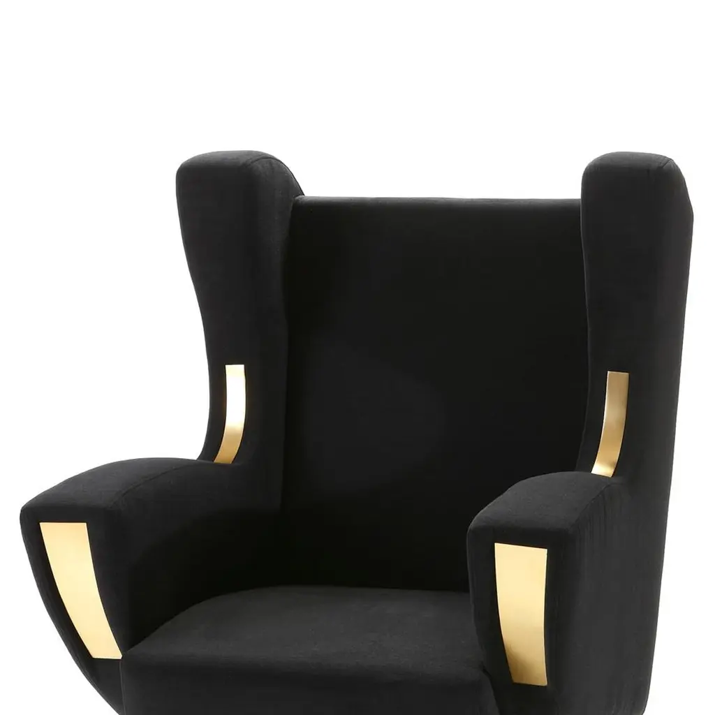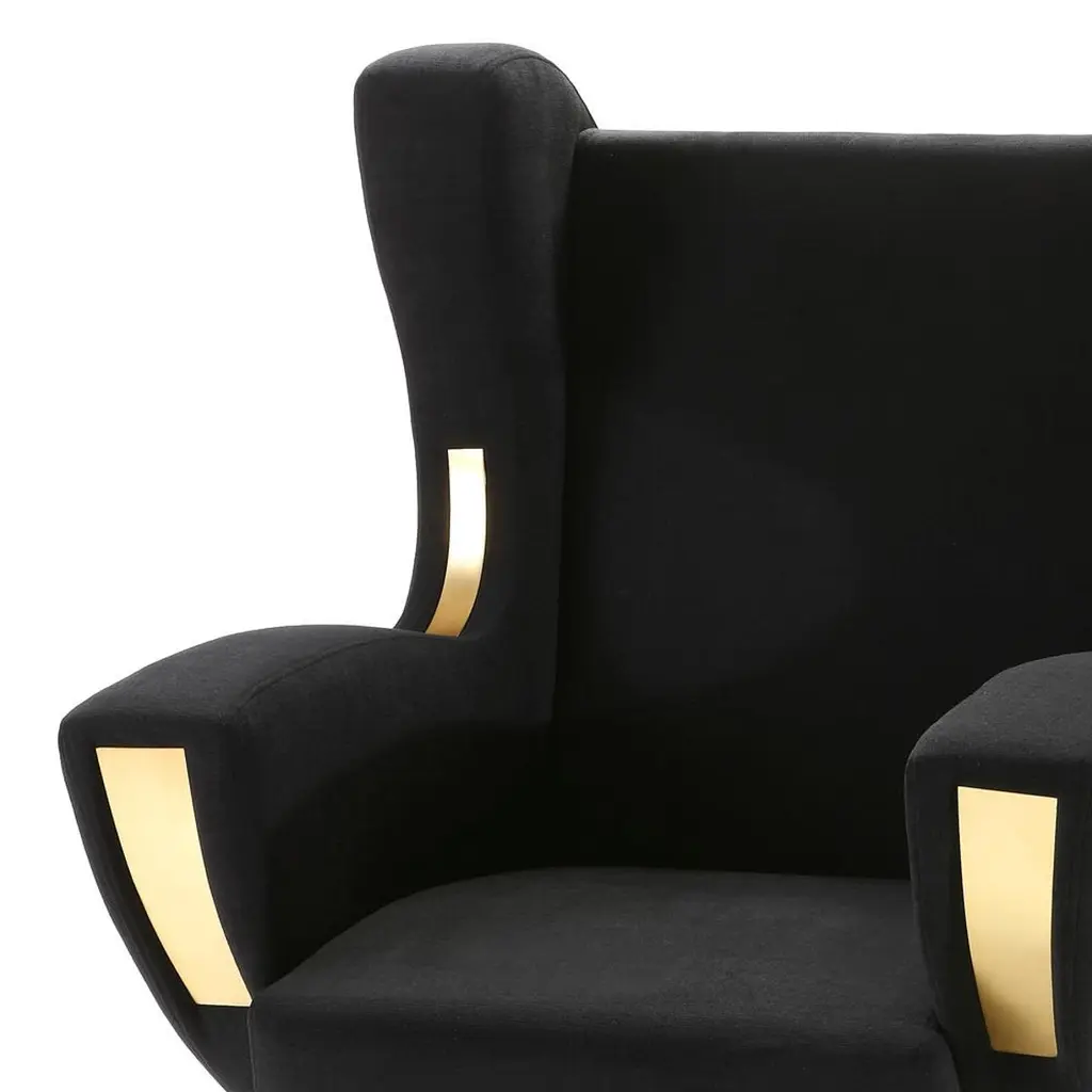 Armchair Berliner with structure in solidwood, covered with black velvet fabric.Details in polished brass.Also available in stool berliner.