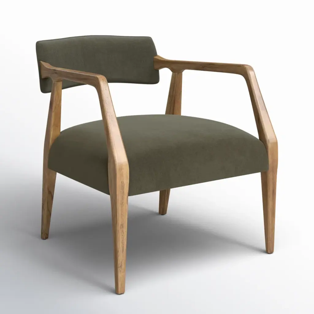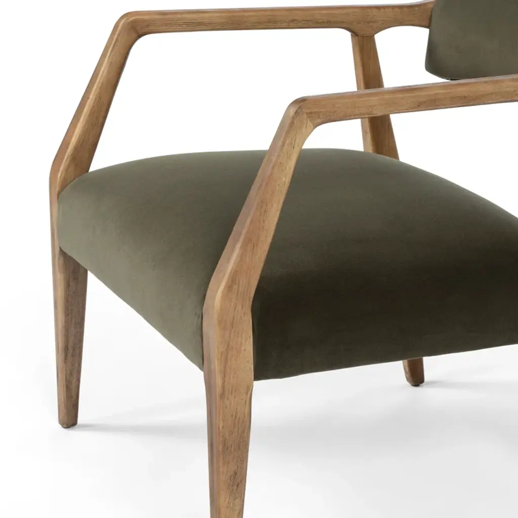 This armchair is your ticket to a trendy, cozy corner. This chair boasts a striking open-back design and square arms, offering a bold statement in any room. The frame is crafted from kiln-dried solid nettlewood, ensuring it stands the test of time. With a deep seat and a low-slung back, it’s all about laid-back lounging.