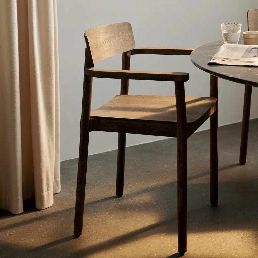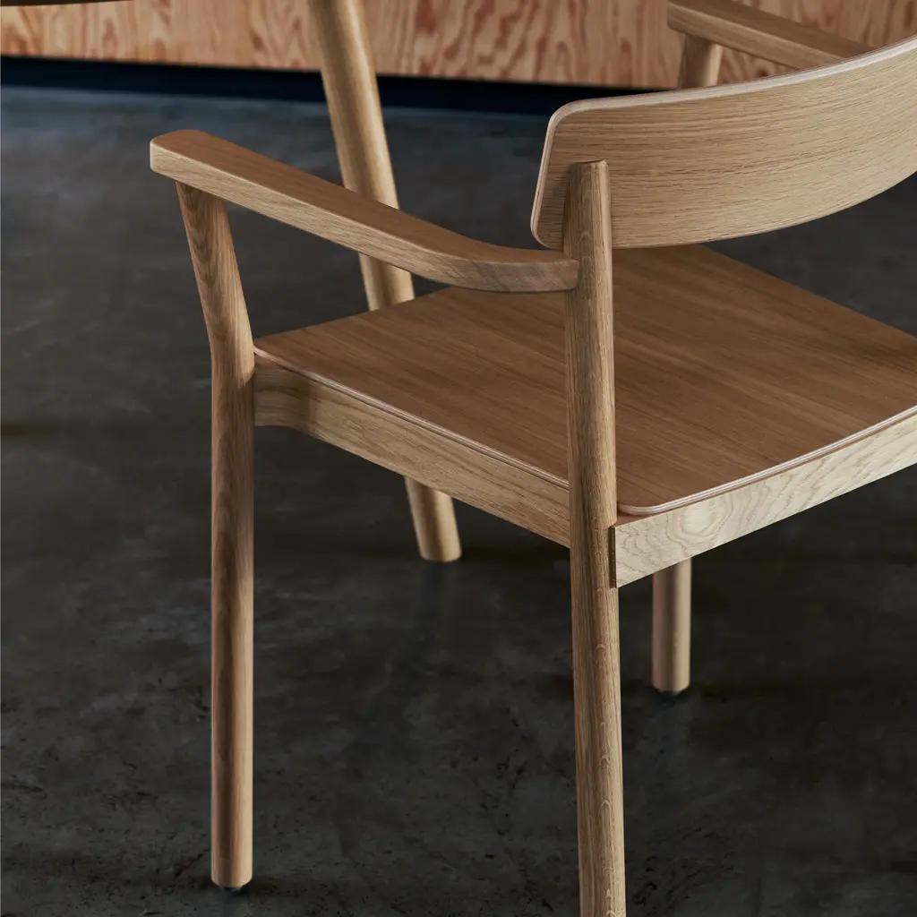 Named after the Betty Nansen Theatre in Copenhagen, this armchair features a sturdy wooden frame combined with an exposed webbed seat made from natural linen fibers. The design is both durable and comfortable, making it suitable for a variety of settings. The Betty series, which includes chairs, stools, and benches, is known for its distinctive design elements and robust construction: The TK10 model maintains these qualities while offering the additional comfort of armrests.