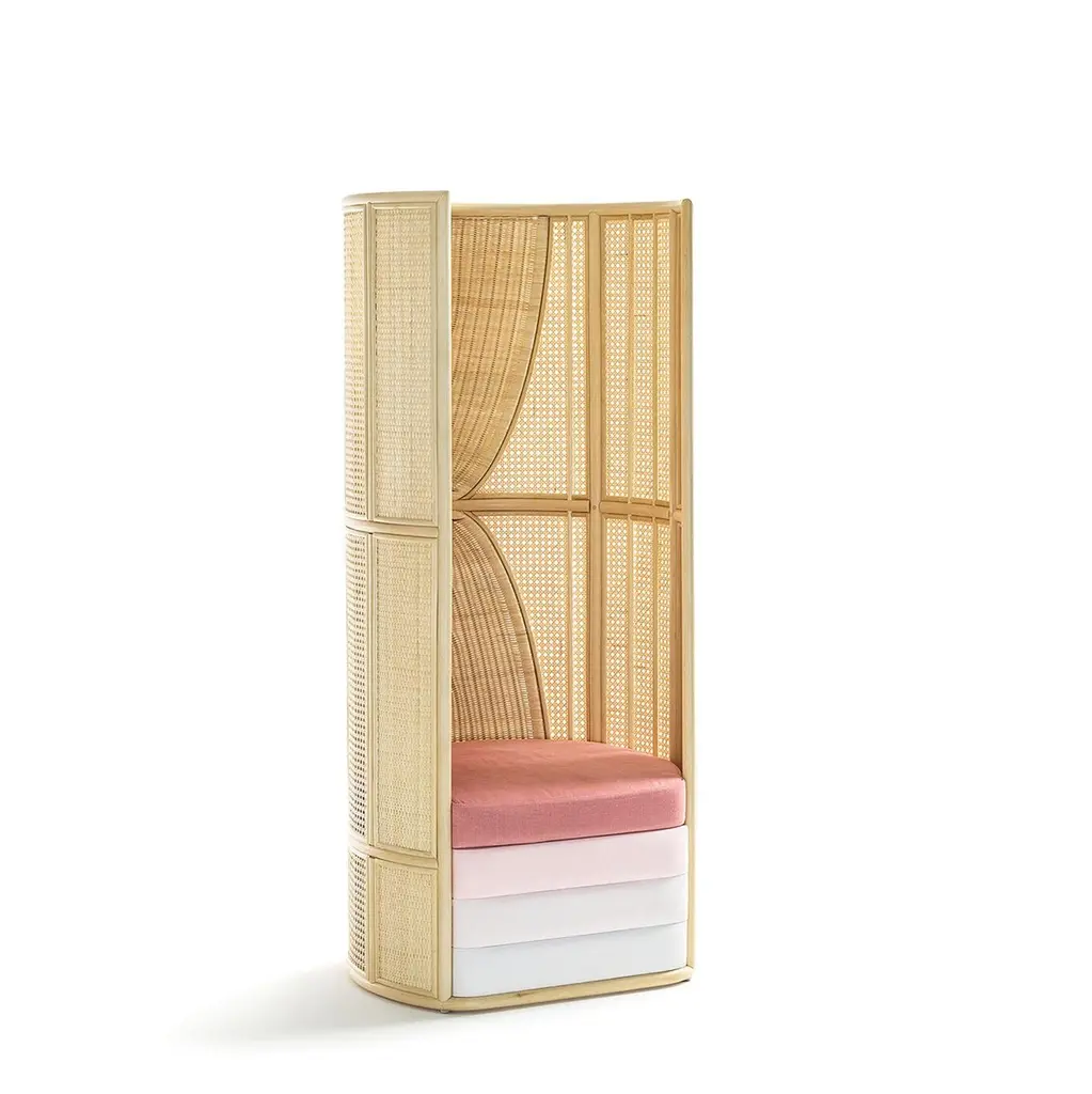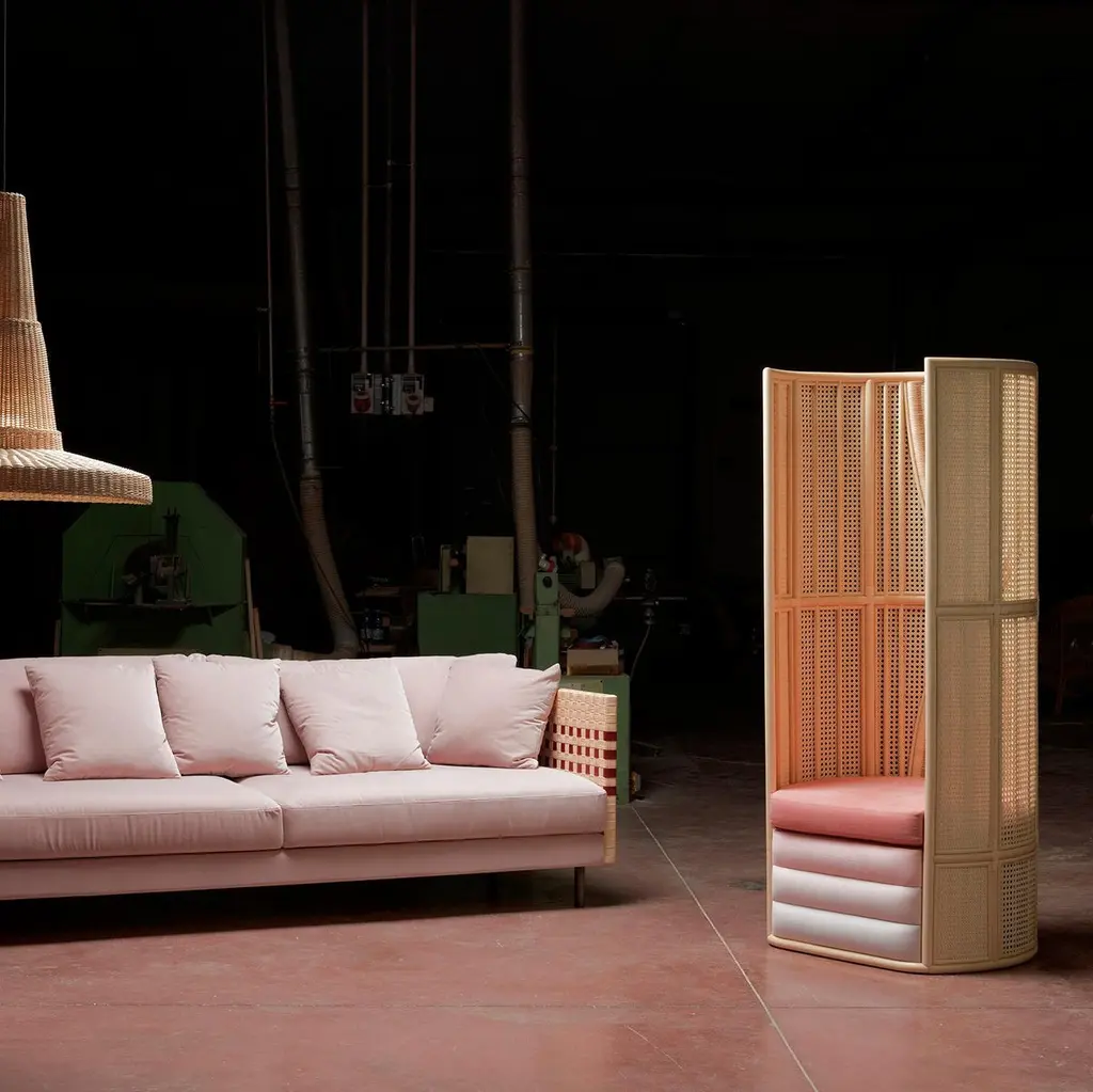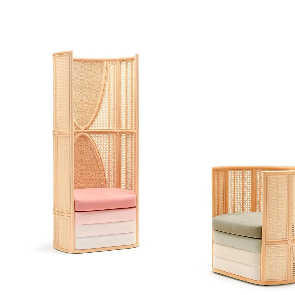 Lisetta T“Lisetta is like an embrace, lovingly protective. That of Elisa Caponi, matriarch of the Maurizi family, who together with her husband Luigi brought weaving to Mogliano. It is a chair that wraps, welcomes and protects, without excluding the surrounding world”.The chair features Vienna straw, given a structural role by means of a system ofbamboo pieces. Fine craftsmanship and quality in all details: like the forty fivedegree cut at the joining point of the back and the woven workmanship of the rear surface with its asymmetrical curvature and tapered design. The touch of each craftsman creates a slightly different outcome.Use and maintenanceAll the items are made with raw materials and are guaranteed for interiors.If it is necessary, they can also be installed outdoors as long as they aresufficiently protected from atmospheric agents and not directly exposedto the sunlight or water, in spaces like verandas, gazebos,arcades or protected spaces.The raw materials used for weavings could be not extremelyhomogeneous due to different physical properties and the items couldhave dimensions a bit different from descriptions listed in this document.The colors could change for the same reasons. Those features arethe demonstration of authenticity of each product that is unique andhandcrafted in Italy by Mogliano’s masters.Woven wicker is extremely resistant over the years, if it is stored in a dryplace and without excessive temperature changes, and it could also change color or nuances due to its sunlight exposure based-on nature. The weavingby the craftsman is performed with soft and wet material, an the material dries naturally with the passage of time losing its elasticity.For this reason, avoid excessive pressures, overloads of heavy weights or impacts. The bases or wooden parts are entirely in solid wood: with the aging they could change in size and present natural micro-cracks. Avoid direct and long exposure to the sun, completely avoid wetting.About the lamp usage, in normal condition the items don’t require special maintenance.TechnicalsAbout item technical details and bulbs specifications, pleaserefer to the technical data sheets.CleaningUse a soft cloth for cleaning. Don’t use any chemicals, acids, scourers or steel brushes.The base in natural wood must be cleaned and dusted using a soft cloth,even slightly damp. Immediately wipe again with a soft, dry cloth.For lamps cleaning, unplug the appliance from electric power before to proceed.Never immerse the device in water. Wicker is a natural material, so cleaning the wicker lampshade don’t get it wet nor use chemicals. Use compressed air to remove dust.