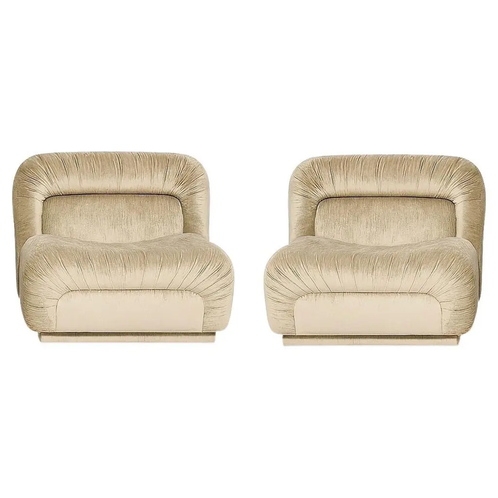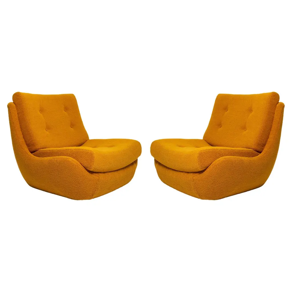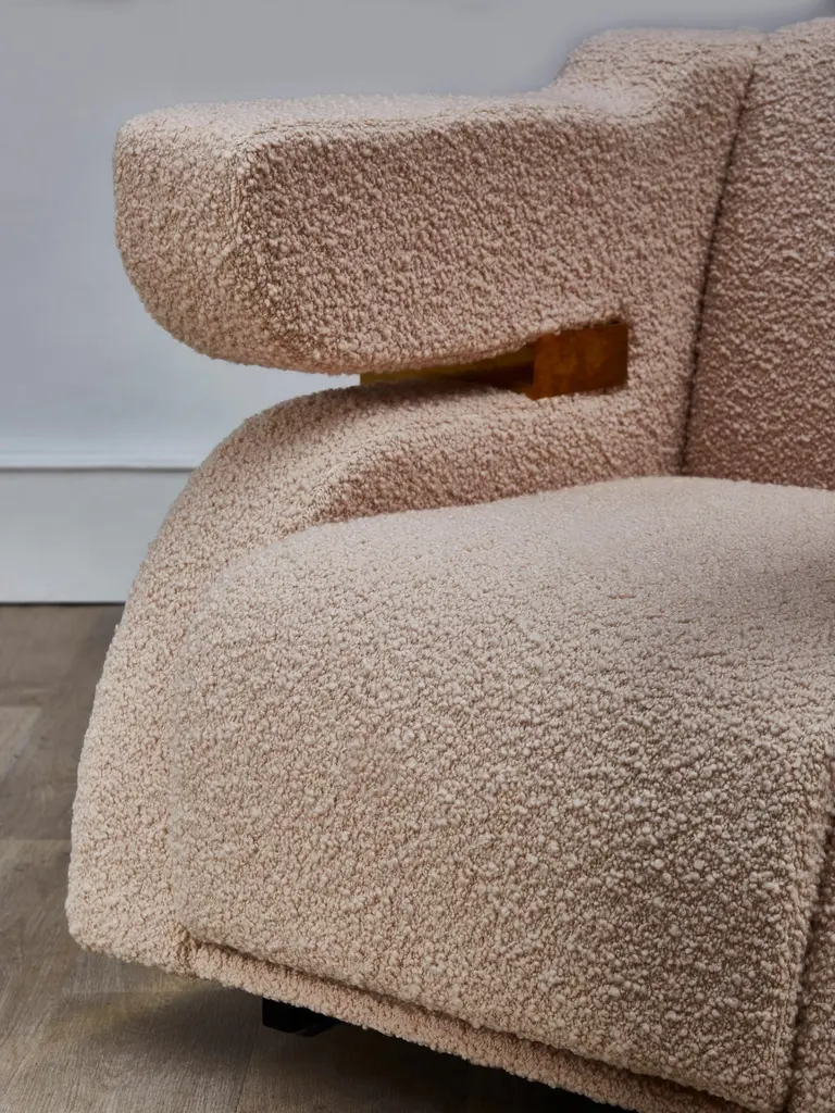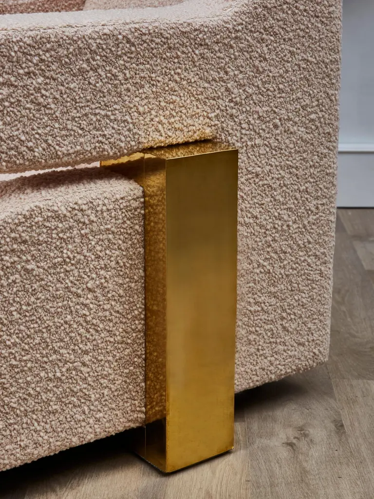 Stunning pair of armchairs with brass structure upholstered with a bouclette fabric by Pierre Frey.Creation by Studio Glustin.France, 2025