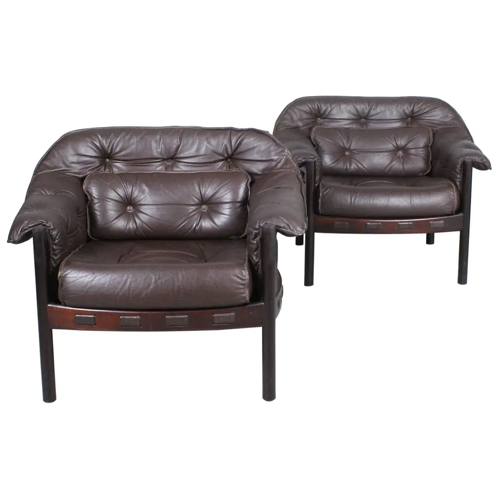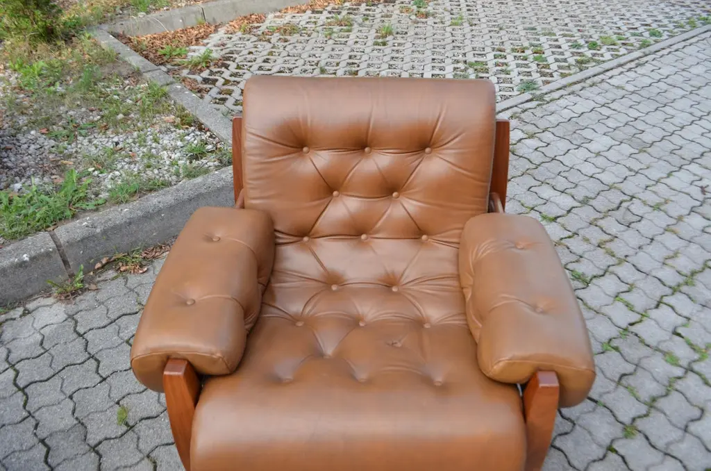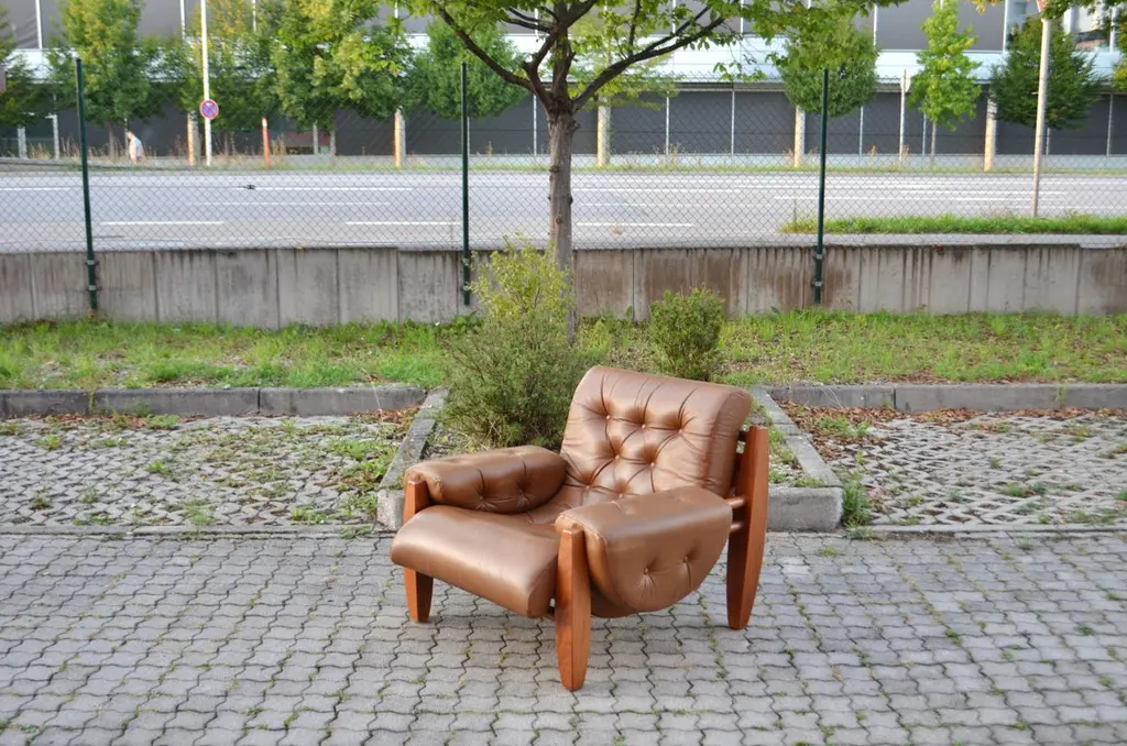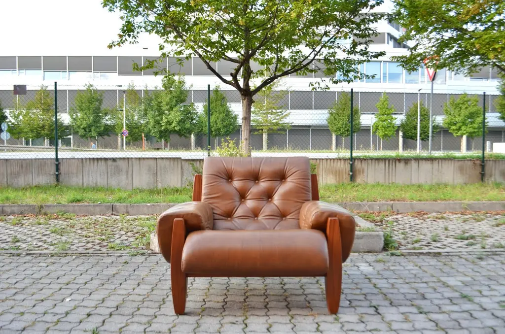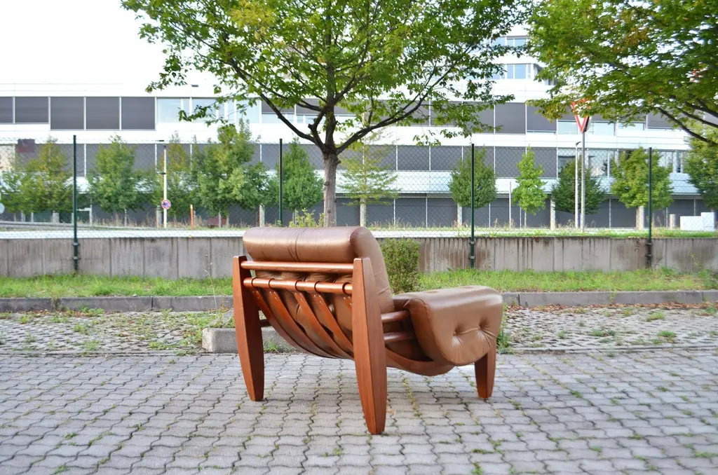 Brazilian Lounge Cognac Leather Armchair 1960s In The Manner Of Jean Gillon