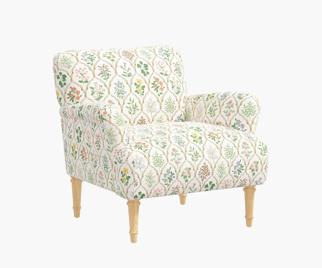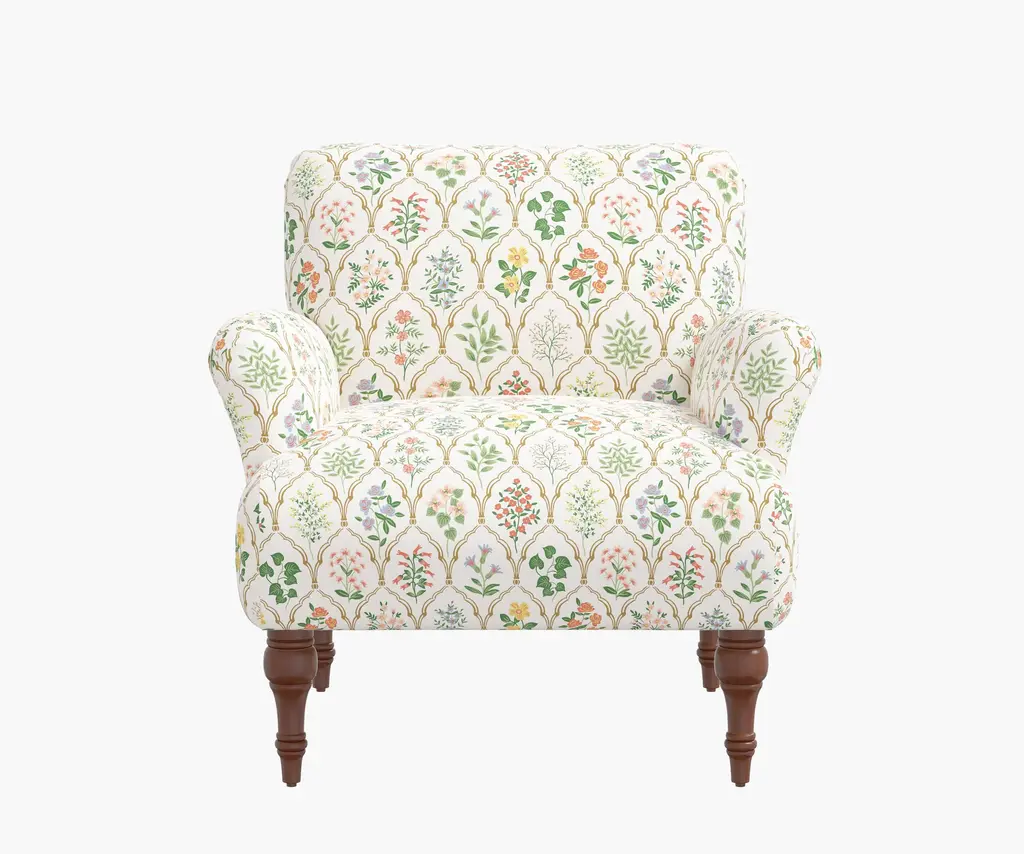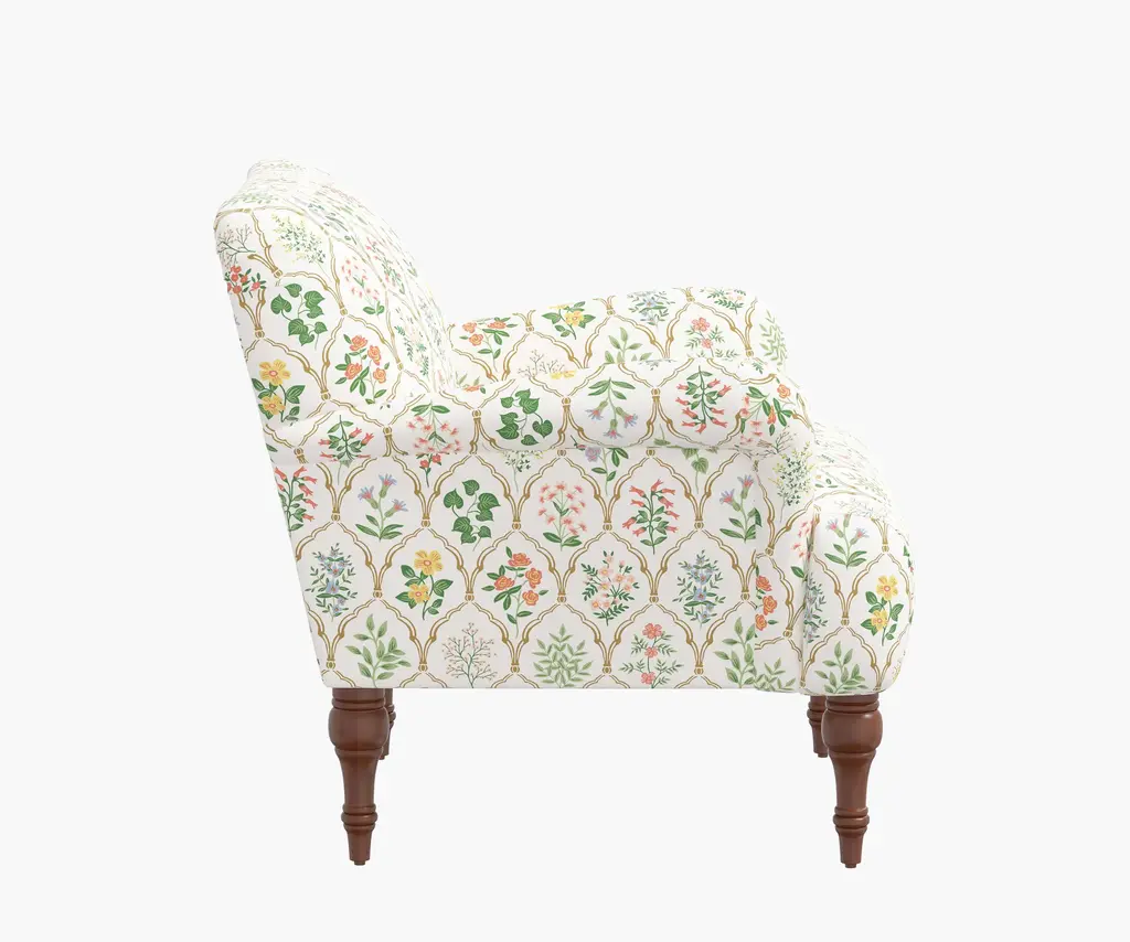 With elegantly curved arms and a wide, comfortable seat, the Bristol Armchair is a classic silhouette thatÕs perfect for curling up with a good book. Select from 17 illustrated fabrics and two leg finishes for your made-to-order piece, crafted in Chicago by Cloth & Company.