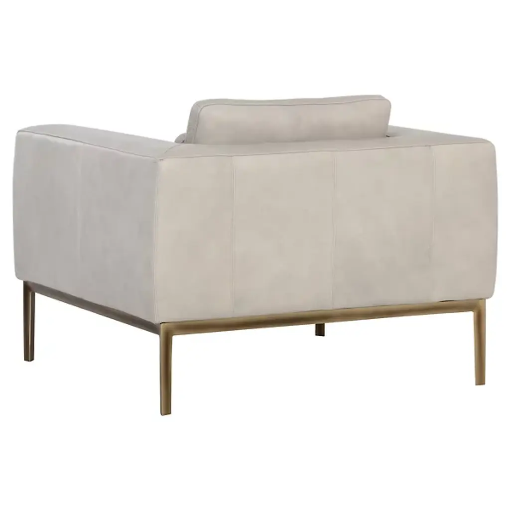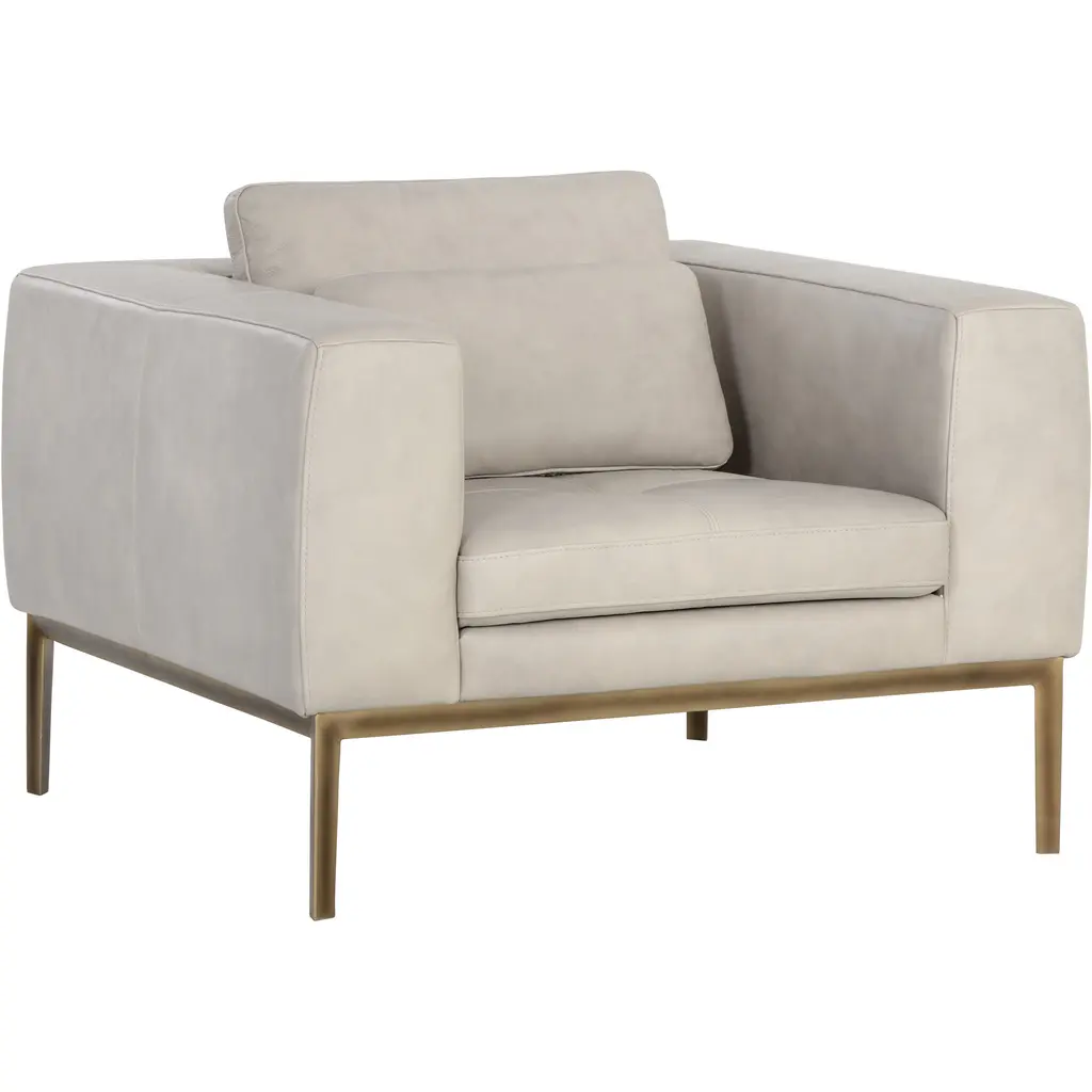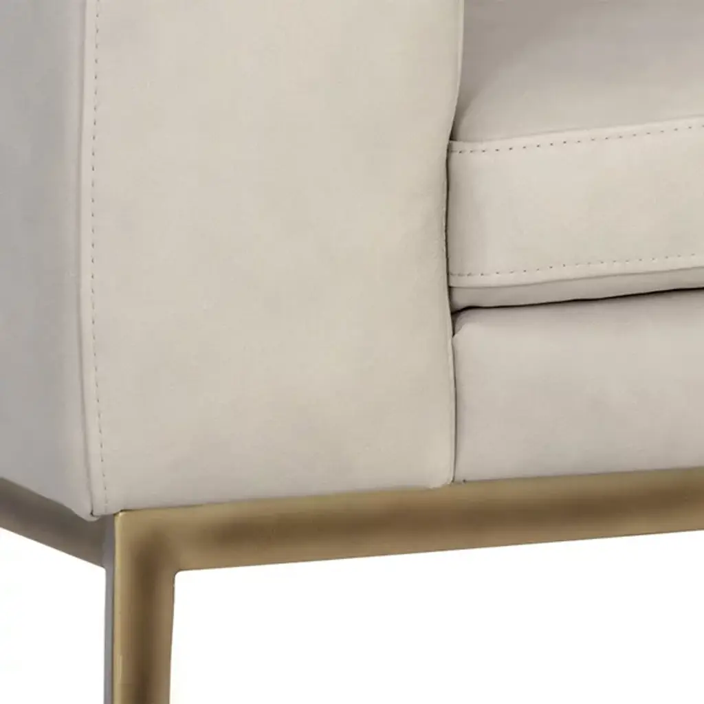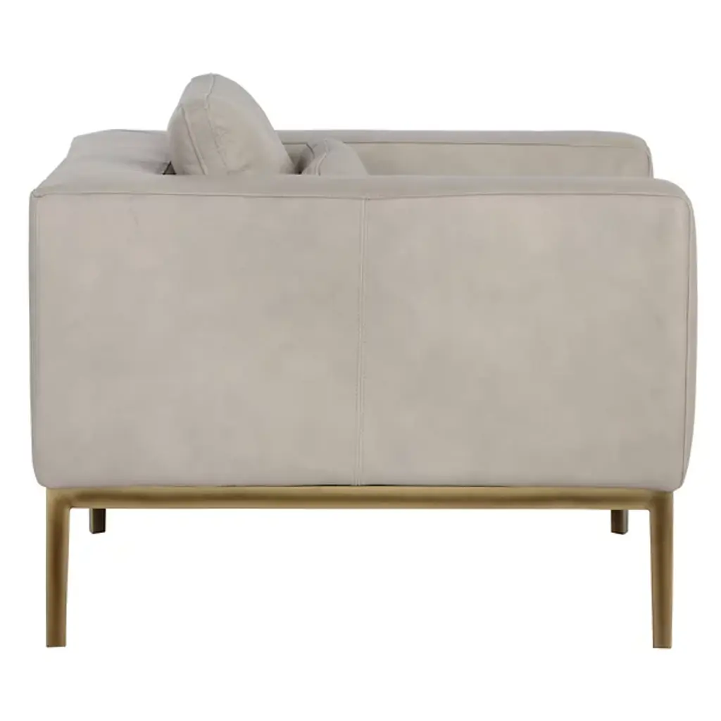 The Burr Armchair from Sunpan makes a bold statement with its direct design and plentiful proportions. Upholstered in a rich leather surface, this chair features broad armrests and a deep seat for unmatched comfort. Rustic bronze-finished steel feet add modern refinement and a robust industrial touch, while the natural beauty of bovine leather ensures unique character with subtle markings and textures. It's a striking addition to contemporary, mid-century modern spaces, perfect when pairing with the coordinating sofa or articulate when standing alone.