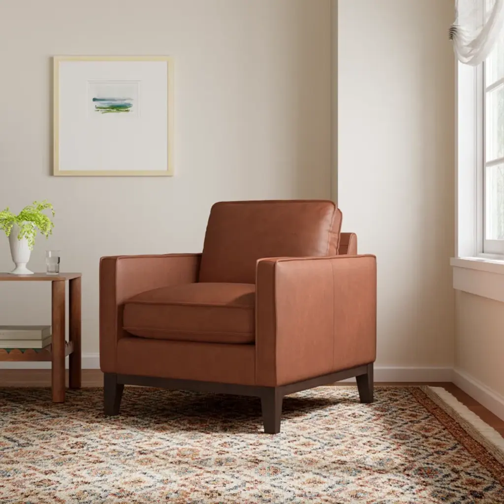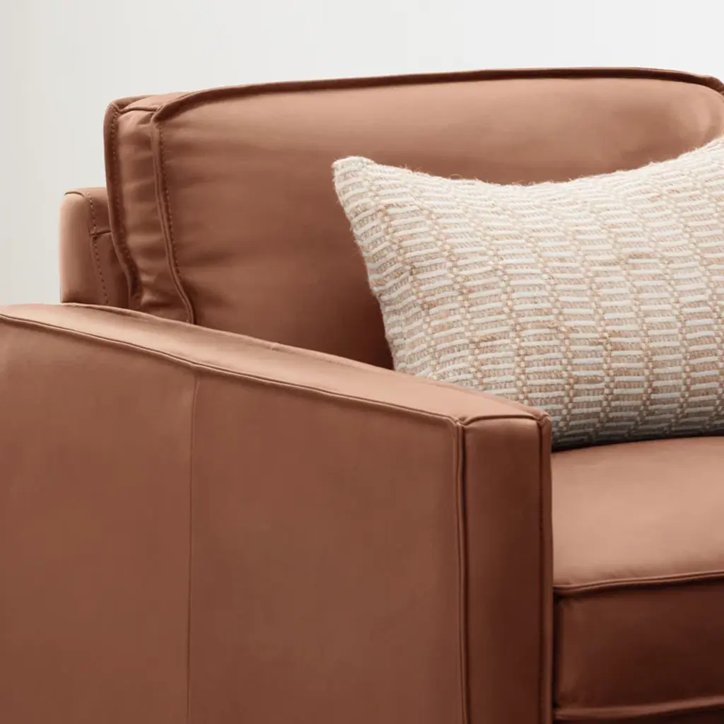 Designed with a minimal but warm feel, the Italian full-grain leather Cascades leather chair offers clean lines and incredible comfort. And the pocketed coil cushions are supported by a solid hardwood base complete with stylish angled legs.