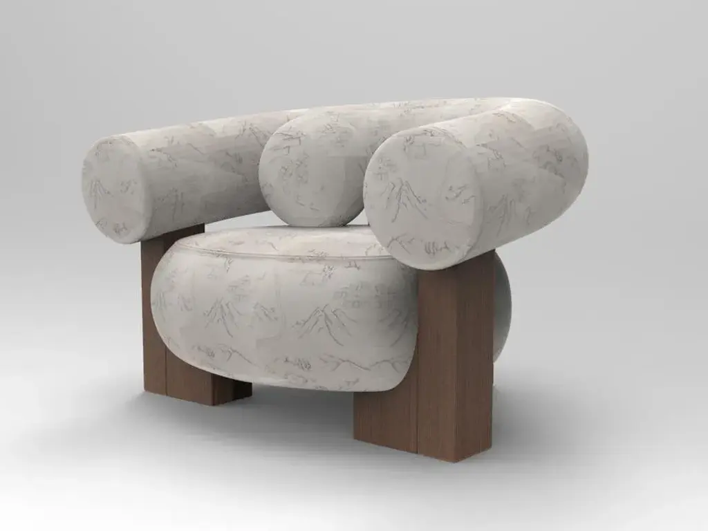 Cassette Armchair in Outdoor Tarim Grey Fabric and Smoked Oak by Alter Ego for Collector, in New conditions. Designed from 2000