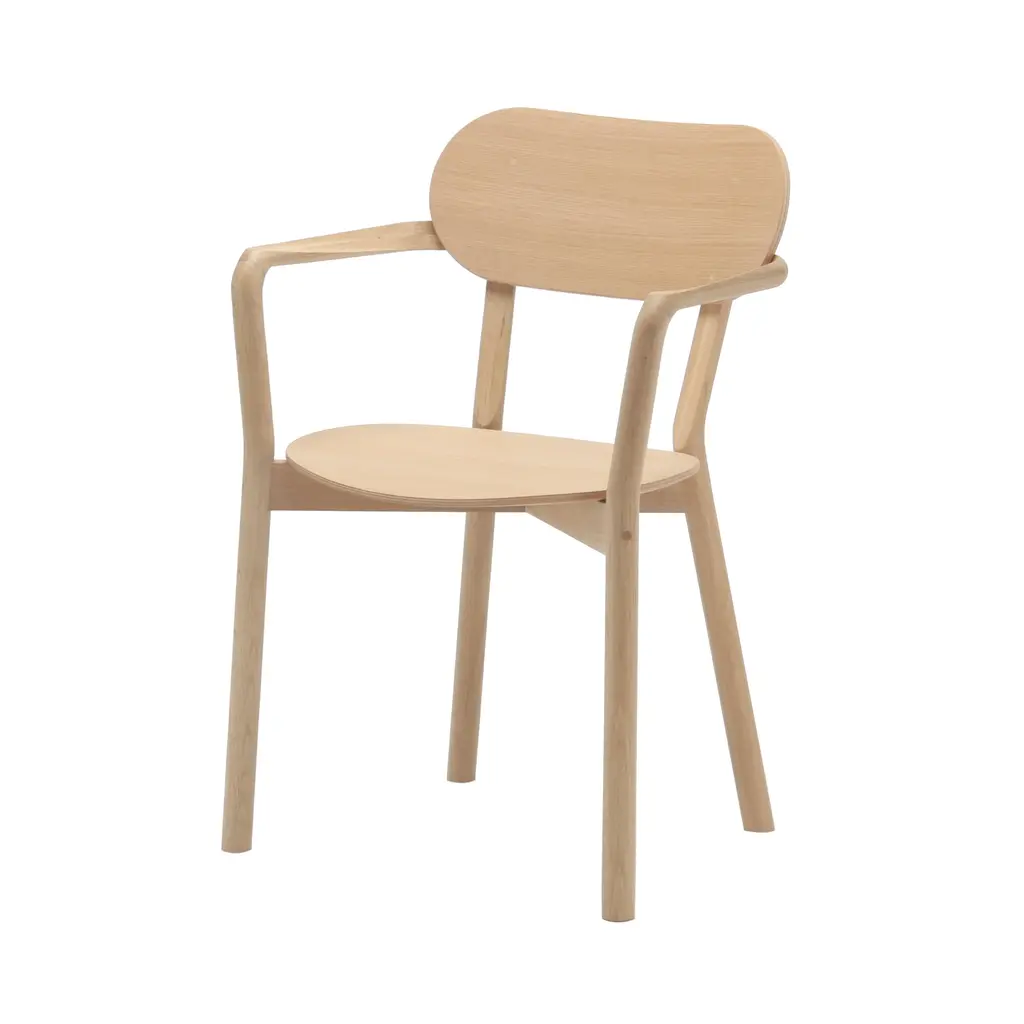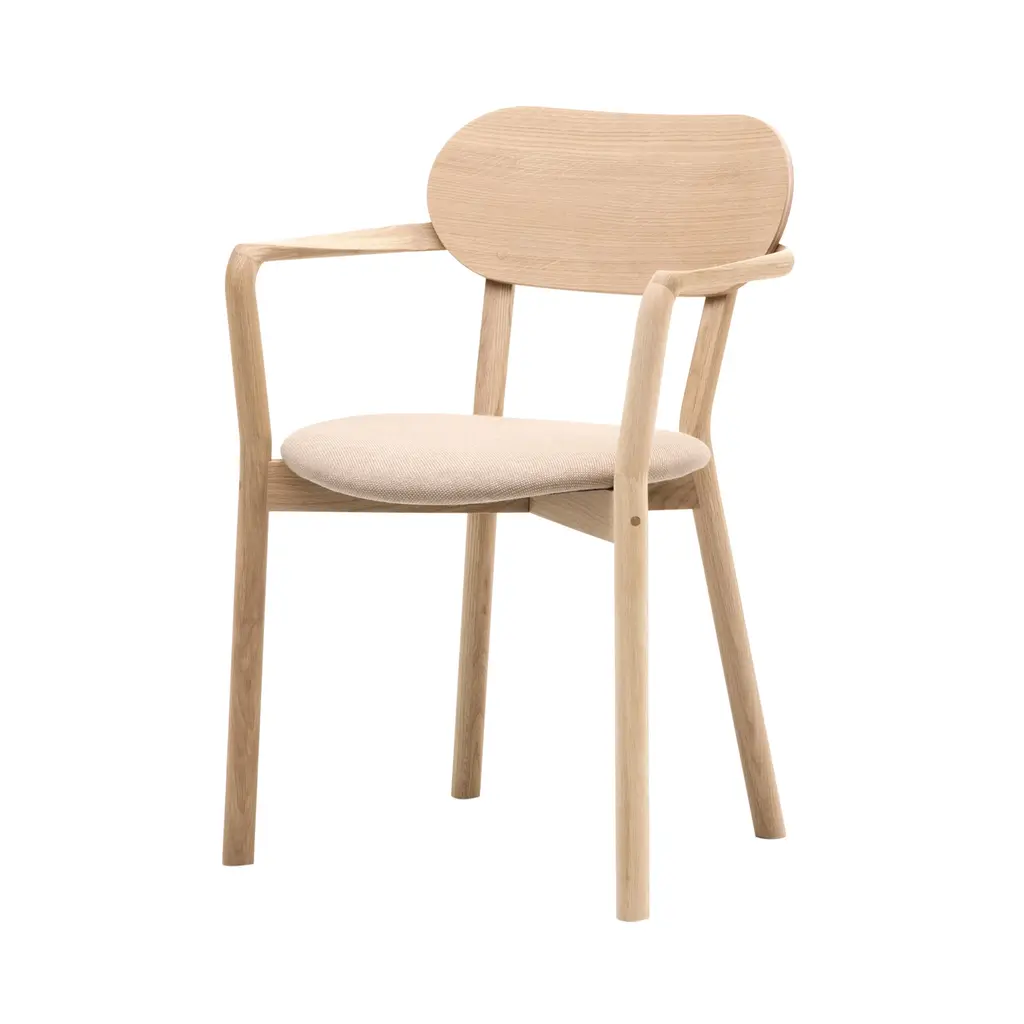 Karimoku offers a subtle take on a padded seat with this armchair from its Castor series. Upholstered with a durable fabric in the same color as the chair's frame, the generously sized Plus offers even more expansive comfort than the original, smaller-scale Castor. Crafted in sturdy Japanese oak and plywood and sustainably produced, the seating comes in a choice or natural, gray or black transparent finish to emphasize the tactile beauty of the woodgrain.