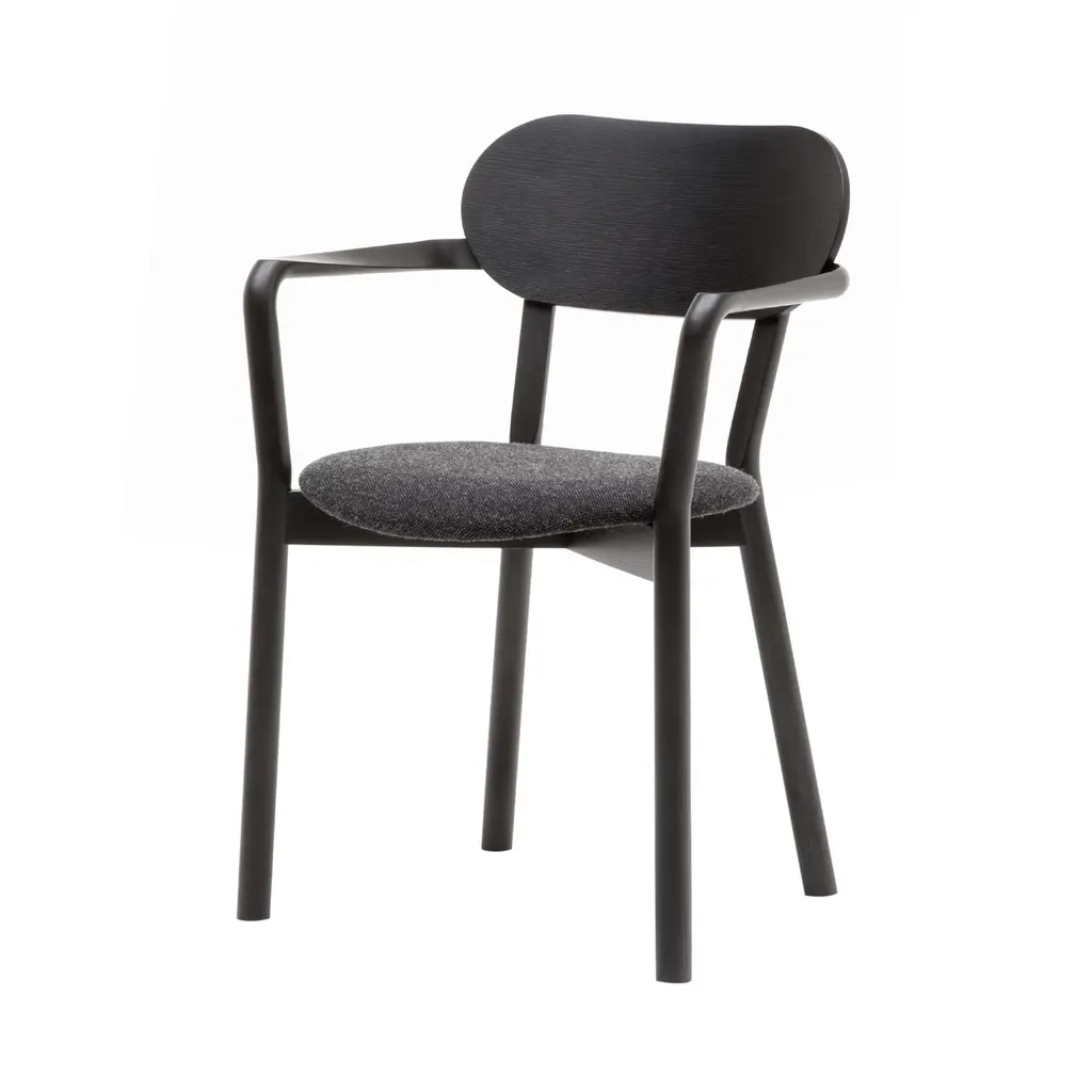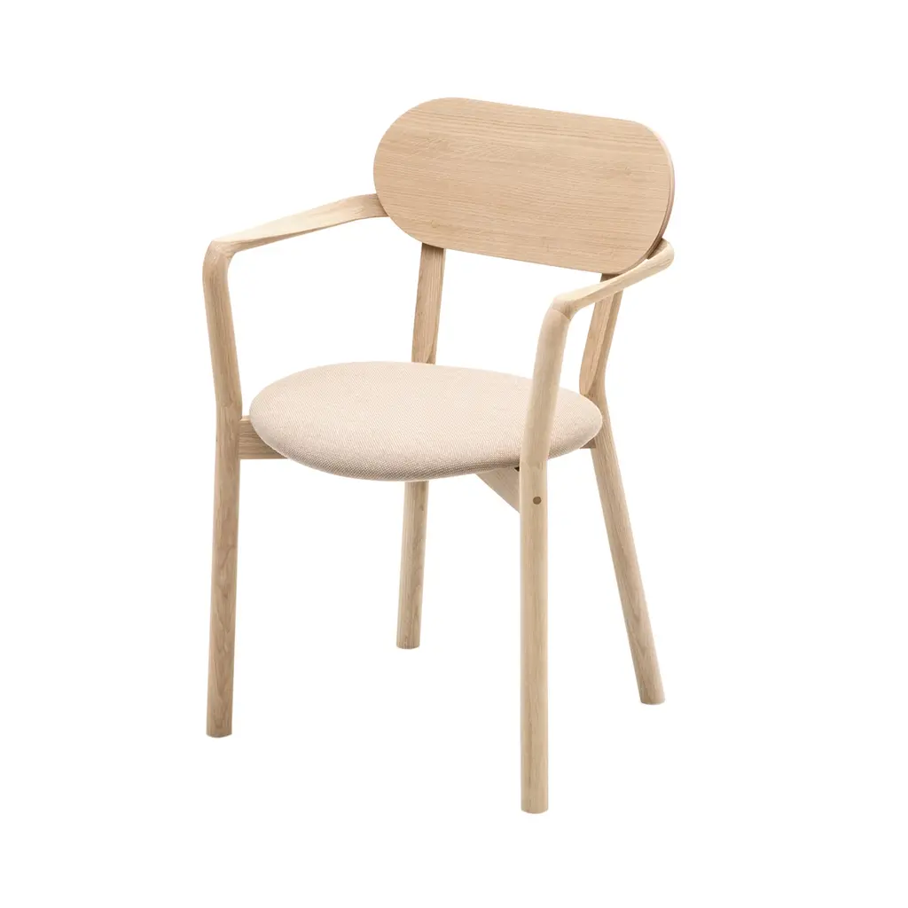 Karimoku offers a subtle take on a padded seat with this armchair from its Castor series. Upholstered with a durable fabric in the same color as the chair's frame, the generously sized Plus offers even more expansive comfort than the original, smaller-scale Castor. Crafted in sturdy Japanese oak and plywood and sustainably produced, the seating comes in a choice or natural, gray or black transparent finish to emphasize the tactile beauty of the woodgrain.