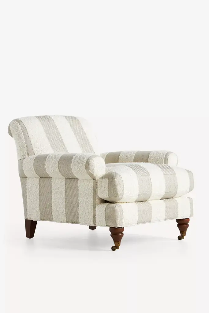 Reminiscent of the umbrellas that line the Amalfi Coast, this mixed-upholstered chair features classic touches with hints of modern design. Its antique legs and elegant, scrolled arms beautifully highlight the striped, cushioned seat. For ordering assistance and more, please [contact us](https://www.anthropologie.com/help/contact-us#contact-us-section-2). For aesthetic advice and tips to help decorate your space, enjoy our complimentary [home styling services](https://www.anthropologie.com/help/personal-styling-home-decor).
