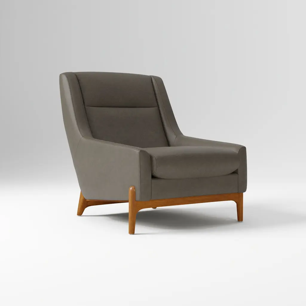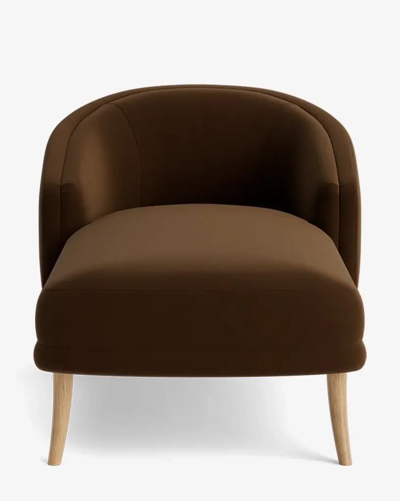 Designed with elegance and comfort in mind, this armchair seduces with its gentle curves and plump volumes. Heat-treated stained ash legs intersect underneath the seat, its generous polyurethane rubber padding shared by the rest of the enveloping wooden shell. A superb tactile feel and lively chromatic statement are offered by the general precious saffron-hued leather cover. Please contact the Concierge to explore available finishing variants.